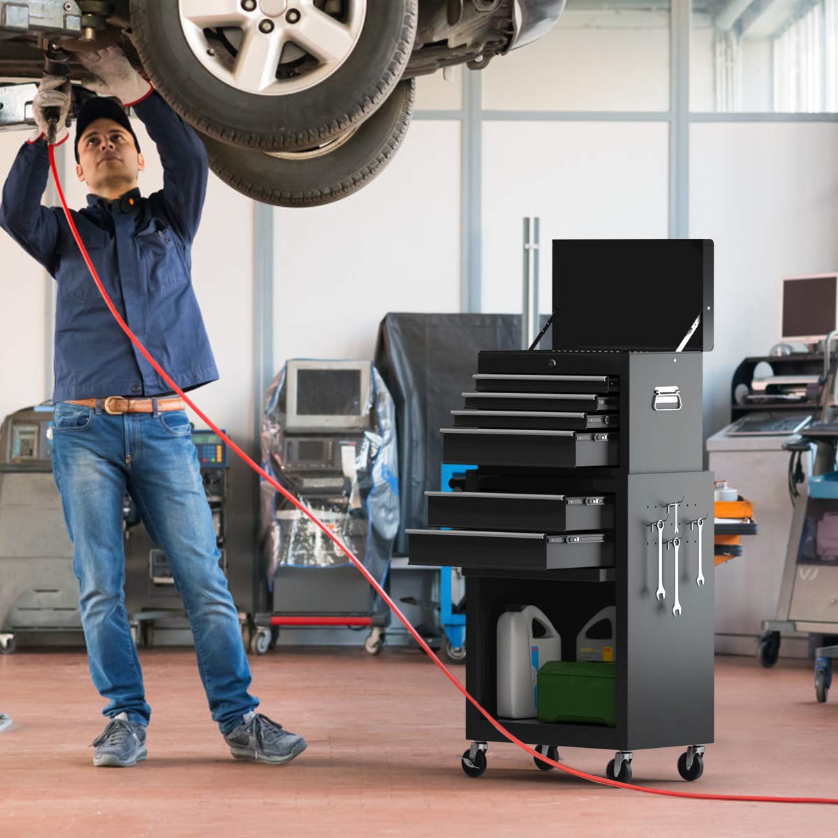 - Ample Storage Space - With top tray, 6 lockable drawers and bottom cabinet, the offers ample storage space to keep a variety of tools and and accessories. Besides, the 4 removable hooks is suitable for hanging wrenches.
