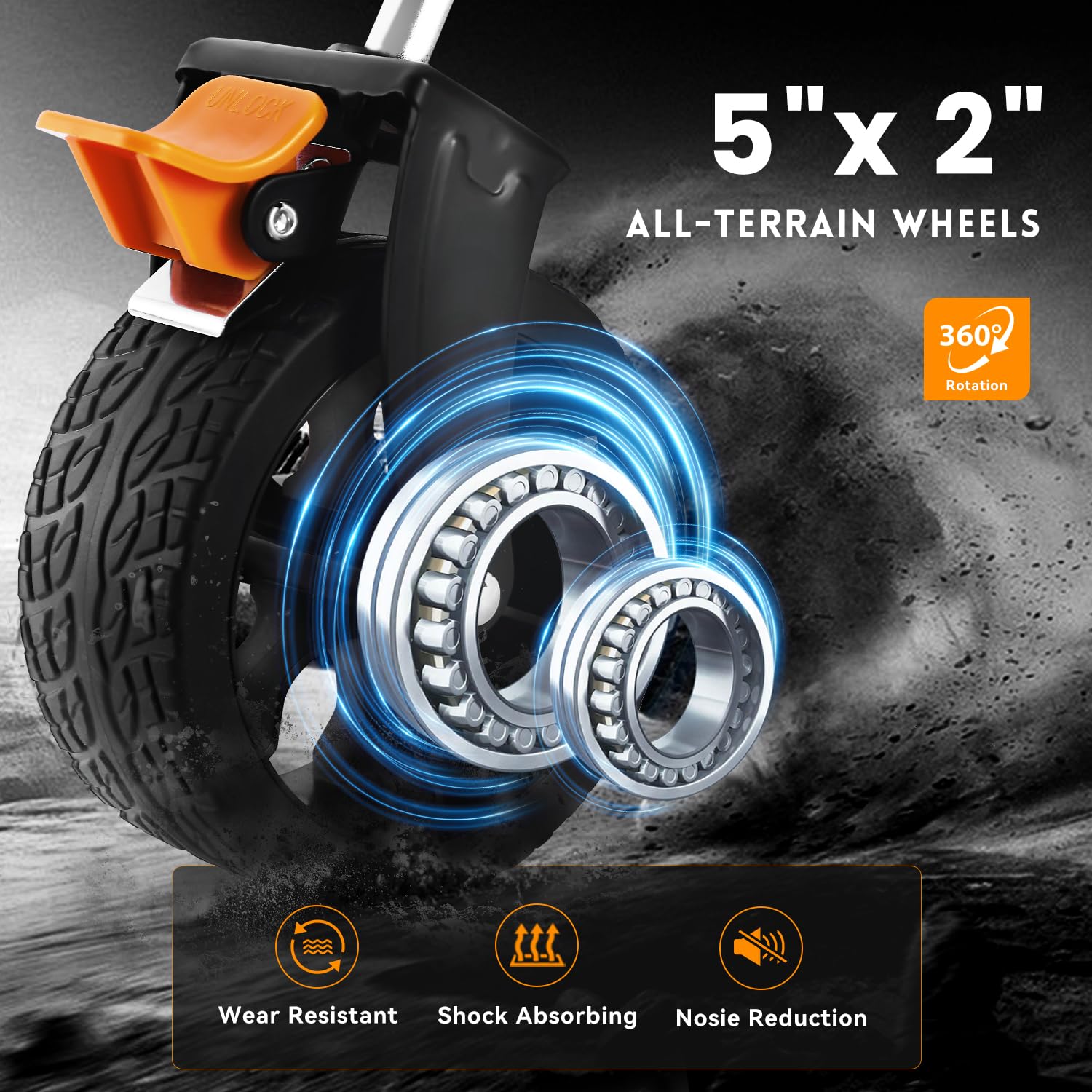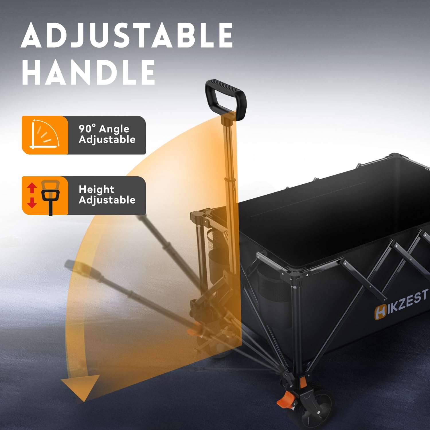 • ▶5" x 2" All-terrain Wheels : Imagine tackling the toughest of terrains with ease and grace – that's what Hikzest collapsible folding wagon promises with its formidable 5x2-inch wheels. These giants of the road grip firmly, allowing you to conquer mud, slick grass, rugged trails, and even unexpected obstacles with a smile on your face.