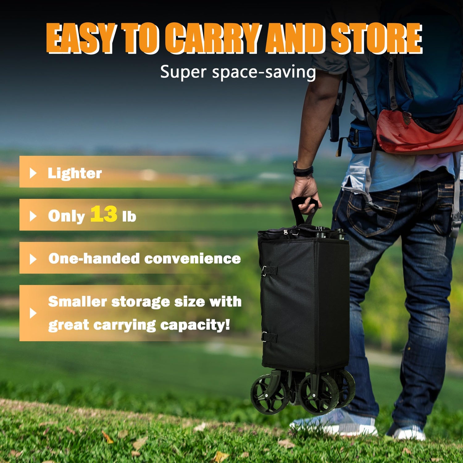 • 【COMPACT DESIGN FOR EASY STORAGE】Compact and portable, the folded dimensions are approximately 10.2" x 6.7" x 17.7". Light yet robust, it effortlessly fits into your car trunk or behind the seat. Say goodbye to the hassle of heavy lifting, as it occupies only a small fraction of your car trunk or closet space.