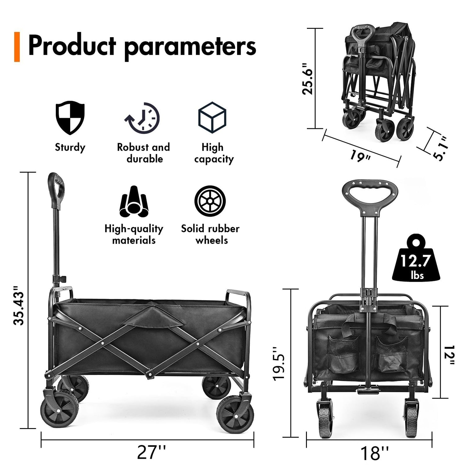 • 【Compact and Portable:】When folded, the wagon becomes a compact 21.7"x 11.4"x 8.7", fitting effortlessly into your trunk or behind the seat. Its light yet robust build saves you from back strain, occupying only a quarter of a sedan trunk.