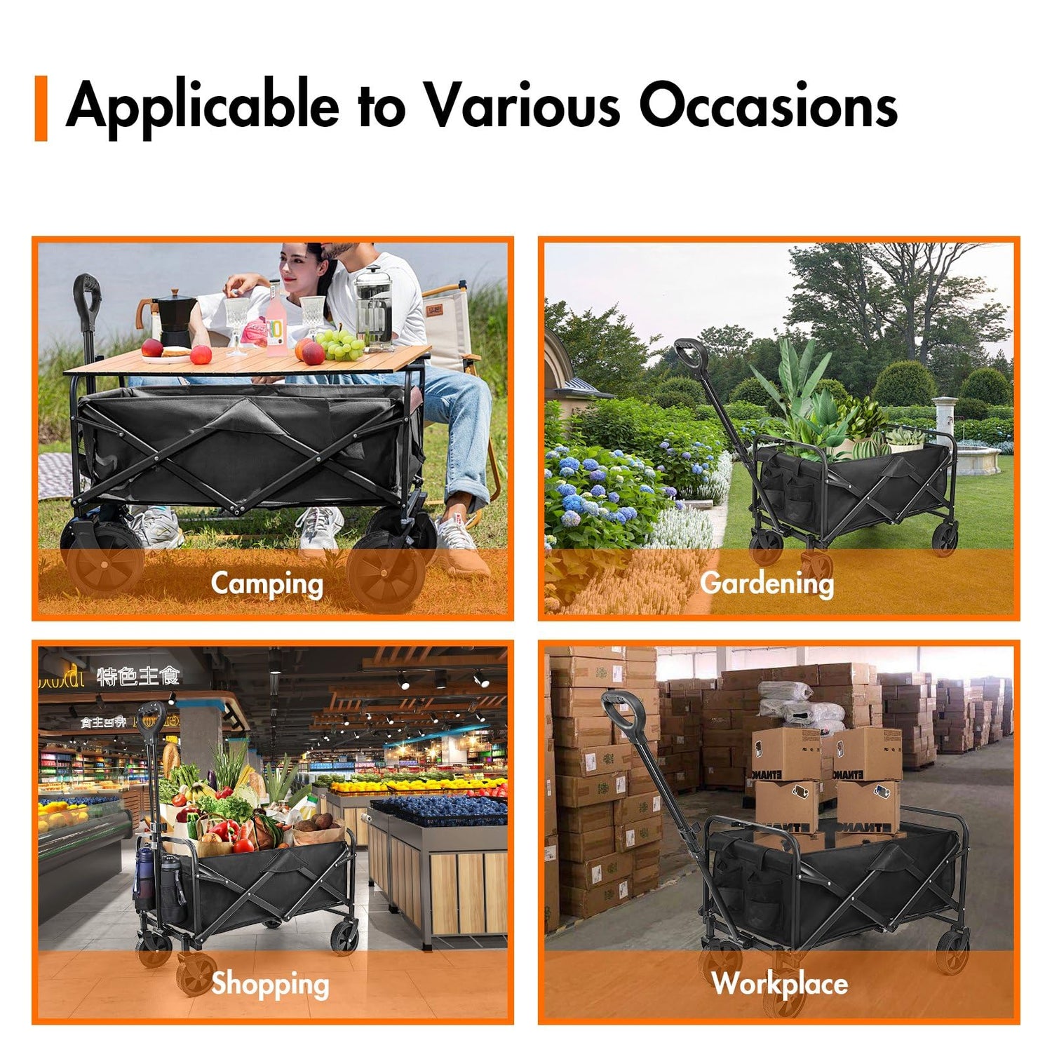 • 【Smooth Maneuverability】With a sturdy-bearing design, the wagon effortlessly rolls over various terrains, ensuring strong maneuverability and goods' safety. The wheels' longevity is extended for a reliable performance.