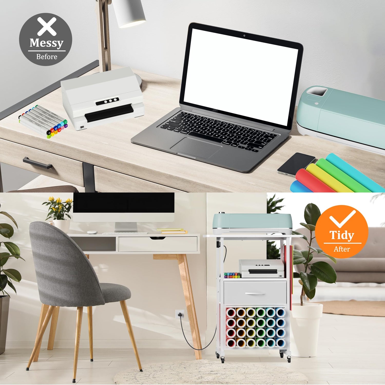 - 【Rolling Craft Cart with Charging Station】Our cricut cart is equipped with 2 AC outlets, 2 USB ports, and the 4.9 ft extension cord helps you charge cricut machine, heat press, mobile phone or computers while creating. The side power outlet is adaptable, allowing for install on the left or right, ensuring convenience no matter if your desk or office setup leans to the left or right. You can focus on your creative work, it is an indispensable assistant on your workbench