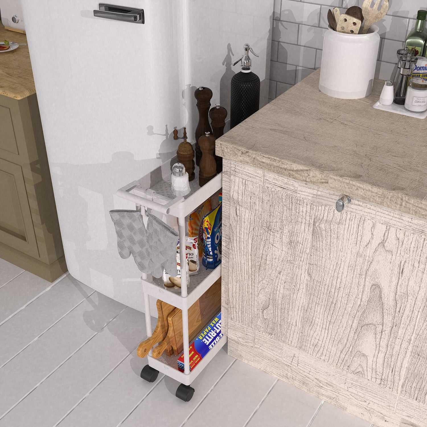 Simple Houseware Kitchen Cart Storage 3-Tier Slim/Super Narrow Shelves with Handle, 26.5'' Height/5.5'' Width for Narrow Place, White