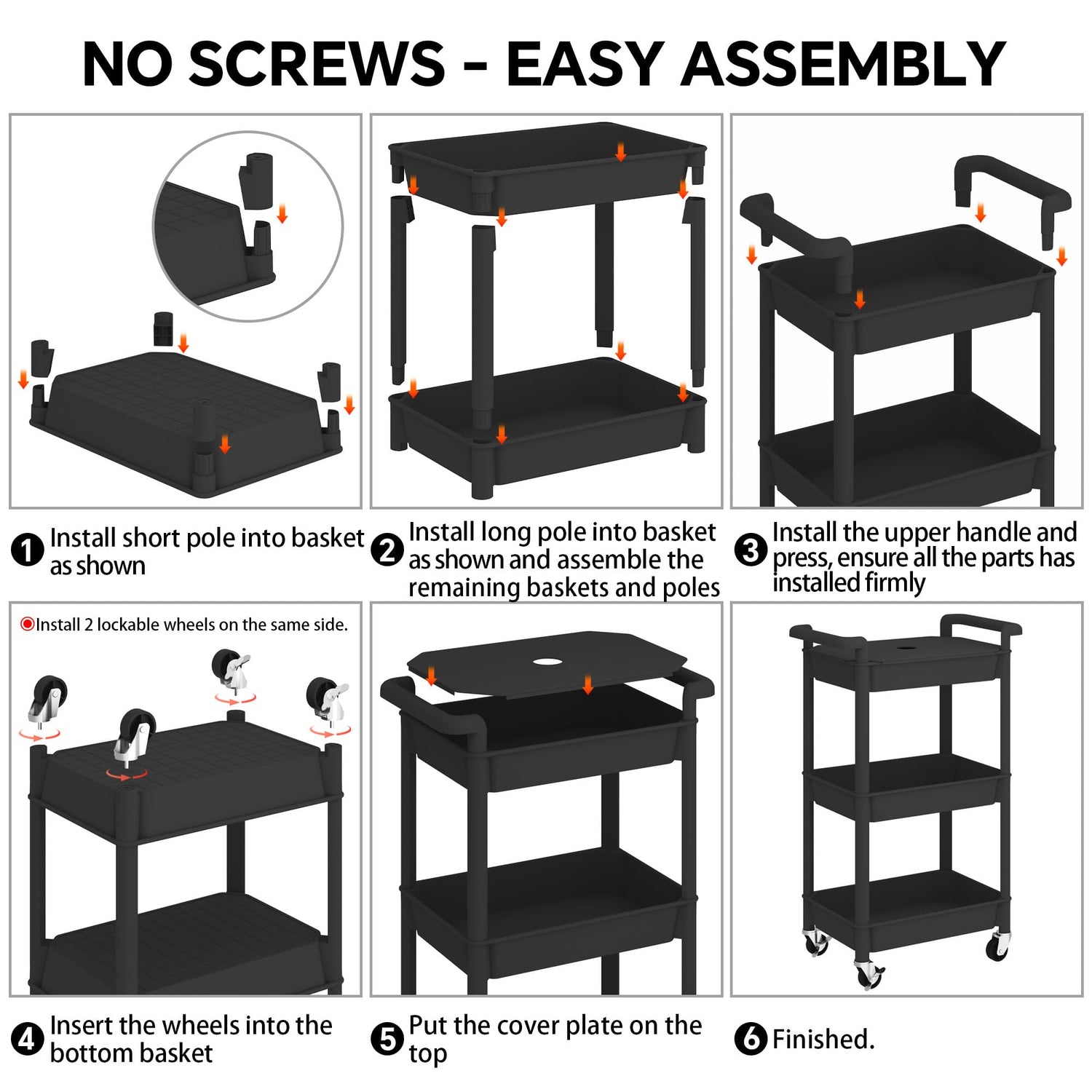 • EASY INSTALLATION: Assemble the trolley quickly and easily by clicking the parts together without any tools. Following with the instruction manual or video, it should take you around 5 minutes to finish the assembly.