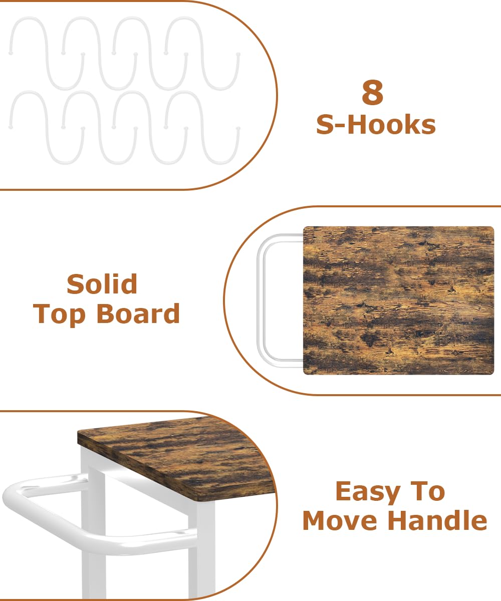 - Simple Assembly & Easy Cleaning: This mini fridge stand is easy to install and can be set up quickly in a few simple steps and taken down easily. It is also equipped with 8 S hooks to hang some kitchen gadgets or headphones etc. This kitchen storage cart is also very easy to clean, you just need to wipe it with a towel regularly.