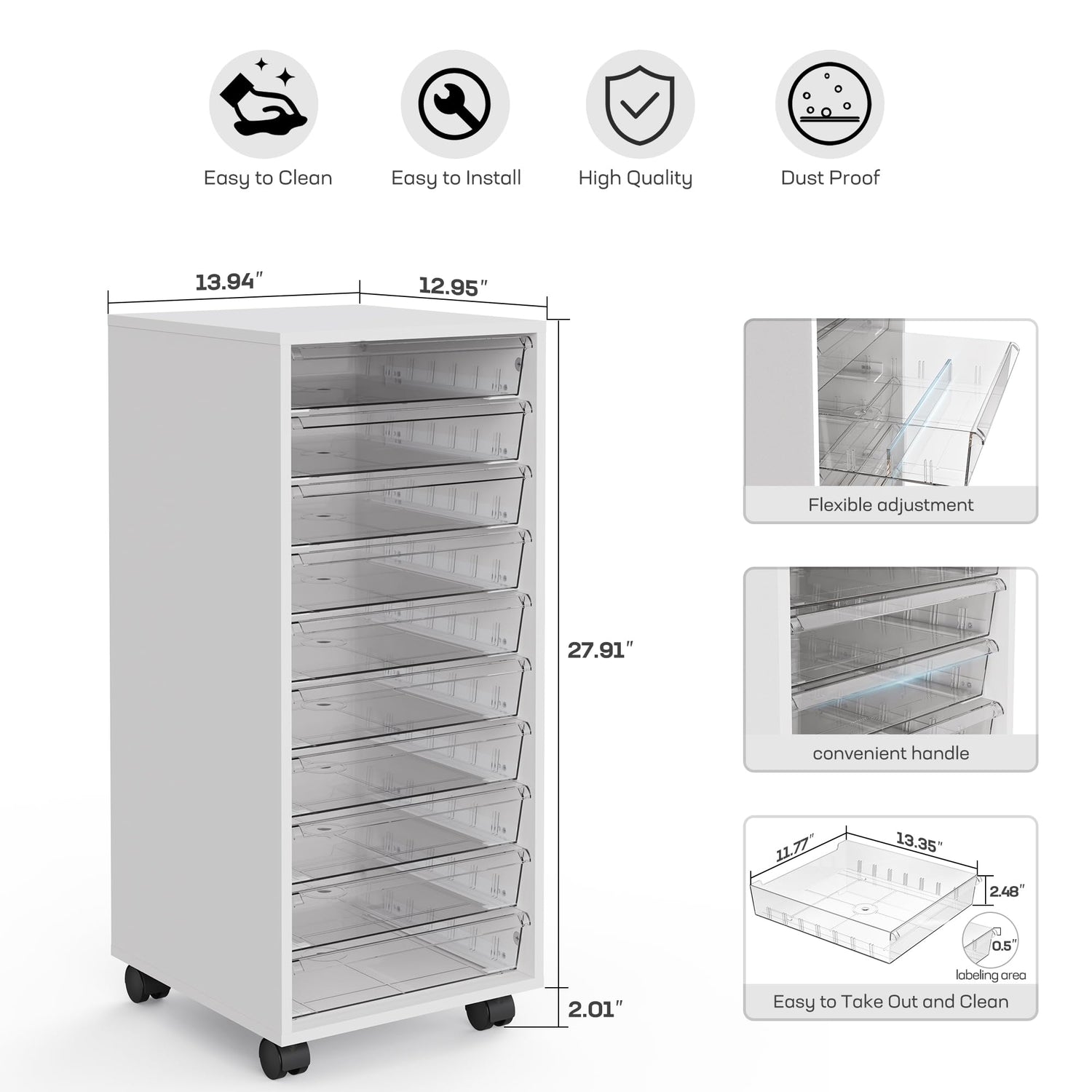 - [Multifunctional Use]: Whether you are a blogger, celebrity, a beautician, a student or a craftsman, this storage drawer cart with 10 drawers will be very helpful to you, providing you with plenty of space for storing different categories of items and making the trivial task of storage enjoyable. Large capacity, meet your storage needs in addition to help you save space. The texture of the furniture, when perfectly integrated with your dresser and closet, is the ideal choice for home decor.