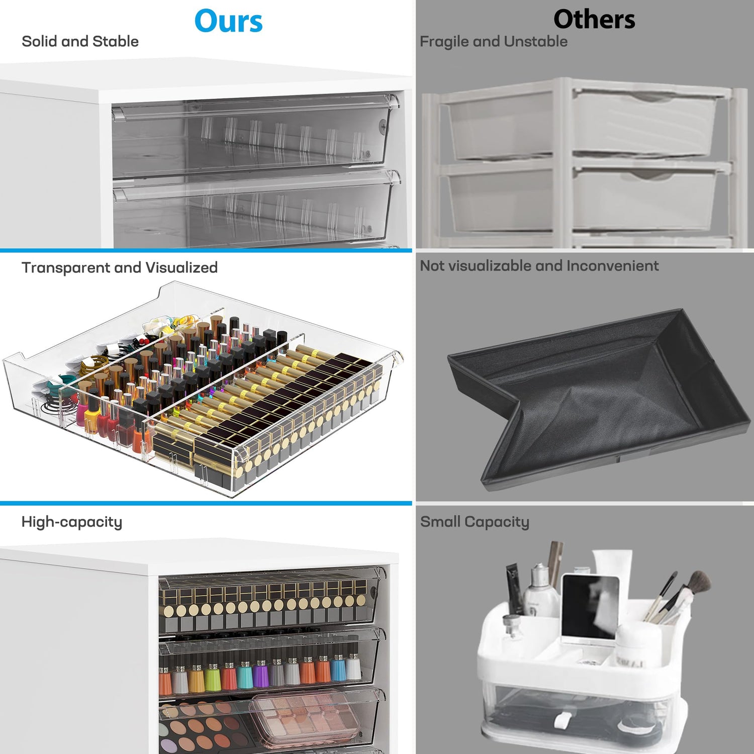 - [Pearly Drawers]: Each drawer tier is transparent so you can easily see the contents, and the drawer handles are designed so that the labels fit perfectly while you can effortlessly remove each tier. Especially good for cosmetic, you can put nail polishes, eyeshadow palettes, nail kits, make-up brushes, foundations, skincare product in each layer in turn, so you can quickly find what you need. It is a great choice for birthday gifts, Christmas gifts, New Year gifts, and housewarming gifts.