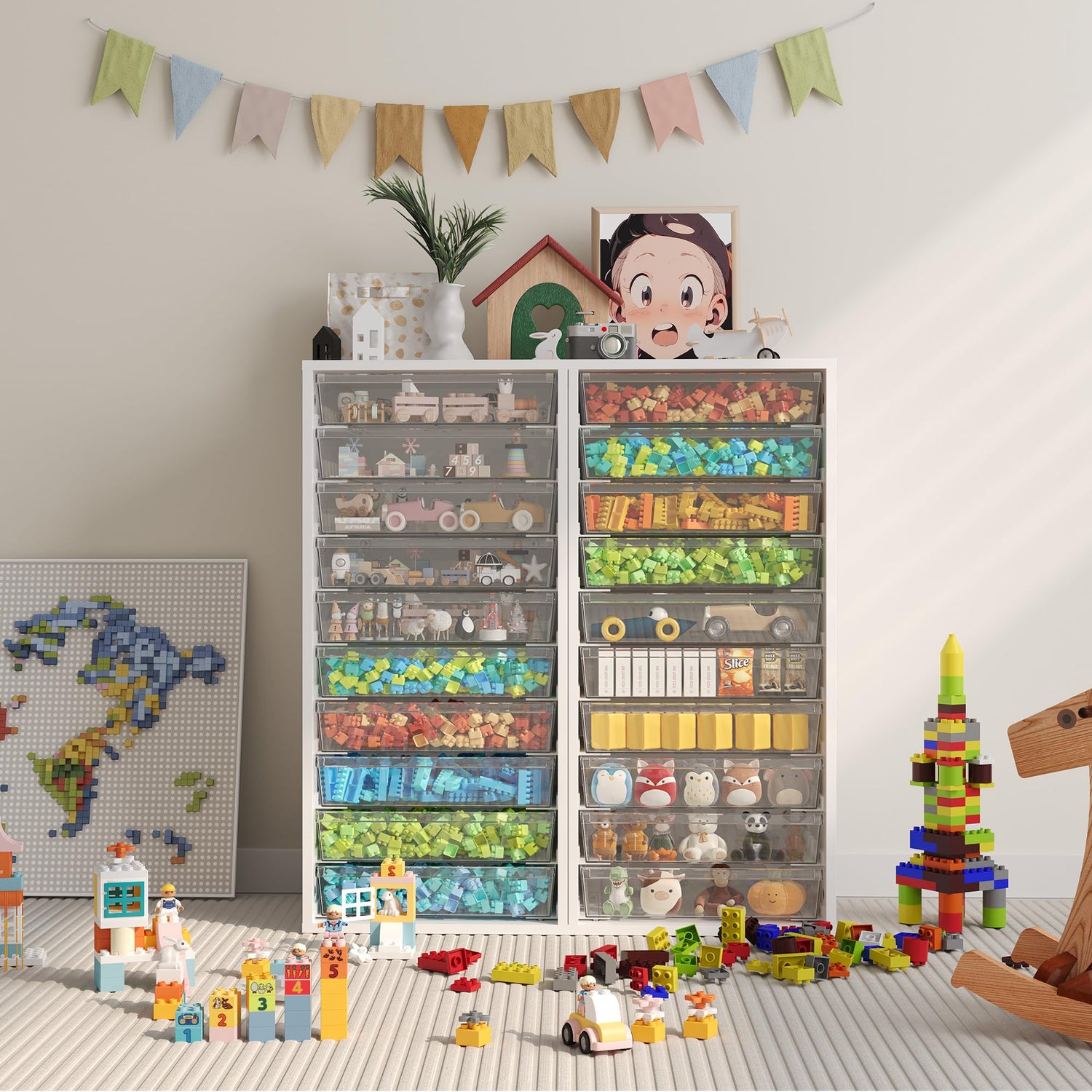 - [Multi-Purpose]:The drawer cart is made of sturdy MDF wood and high-quality PET plastic, the wooden desktop allows you to place decorations, plants, legos, dolls and more. Each drawer can hold up to 11 pounds, can hold cosmetics, skin care products, household items, baby supplies, office supplies, arts and crafts, tools, sewing supplies, toys, craft materials, holiday decorations, etc, both storage and decorative premise to ensure a long-lasting use, perfect for integrating into your home.