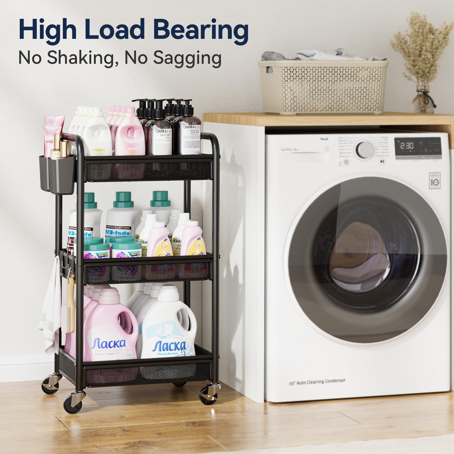 • Larger Storage Capacity, Multifunctional Storage: Featuring 3 spacious metal baskets, 2 hanging cups, and 3 hooks, this rolling carts with wheels offers extra storage for any occasion. Use it as art car, craft cart, makeup cart, bathroom cart, bedside cart or diaper cart