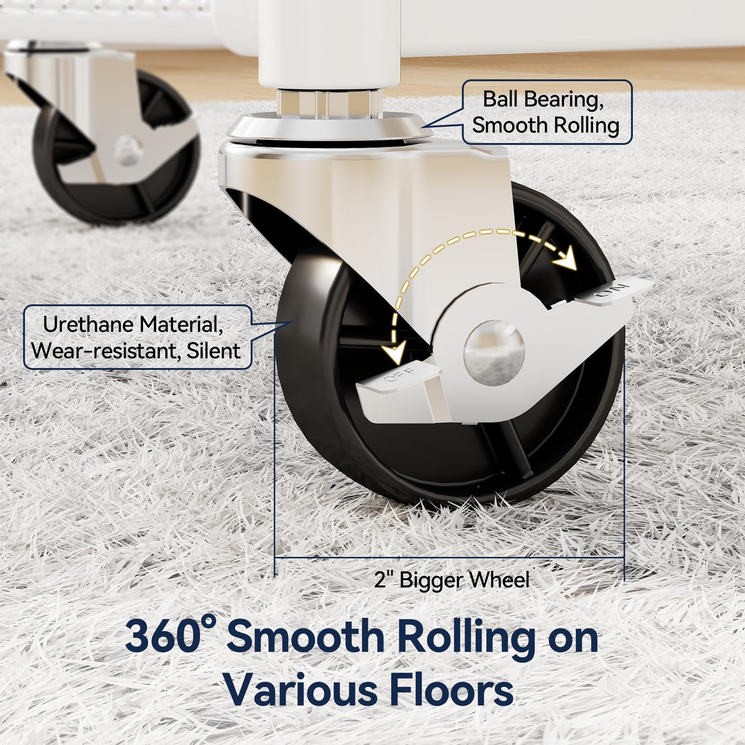 - Effortless Movement Under Heavy Loads: With 2in heavy-duty wheels paired with sturdy frame, the metal rolling cart glides smoothly and stays stable on carpet or hardwood. The wear-resistant urethane wheel won't scratch surfaces