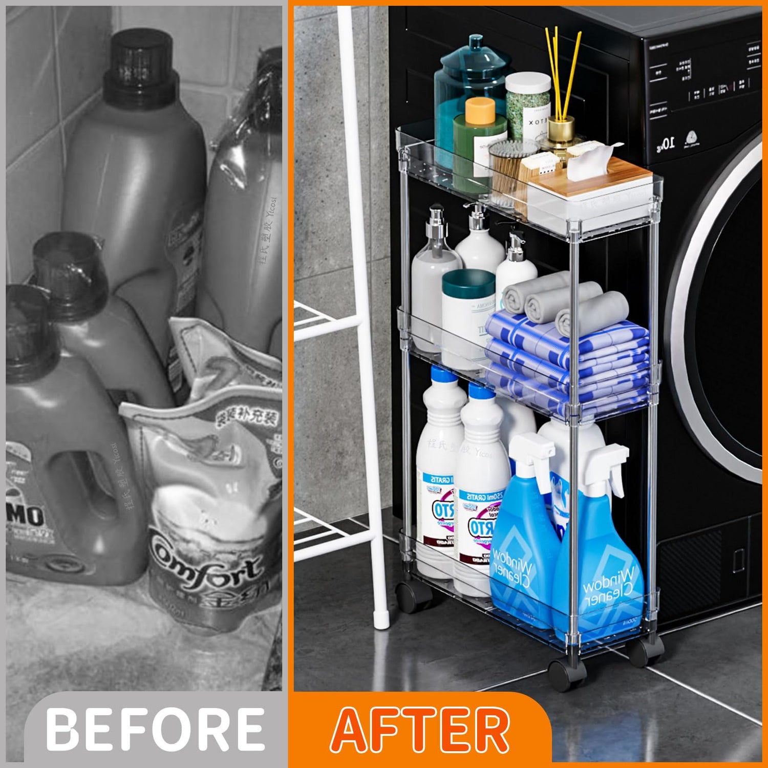 - 【Multifunctional bathroom shelf】The storage cart can be used as laundry room organization and storage for between washer and dryer storage,dorm room storage,laundry room organization,bathroom storage cabinet,makeup shelf, utility cart,small snack cart to keep your space organized
