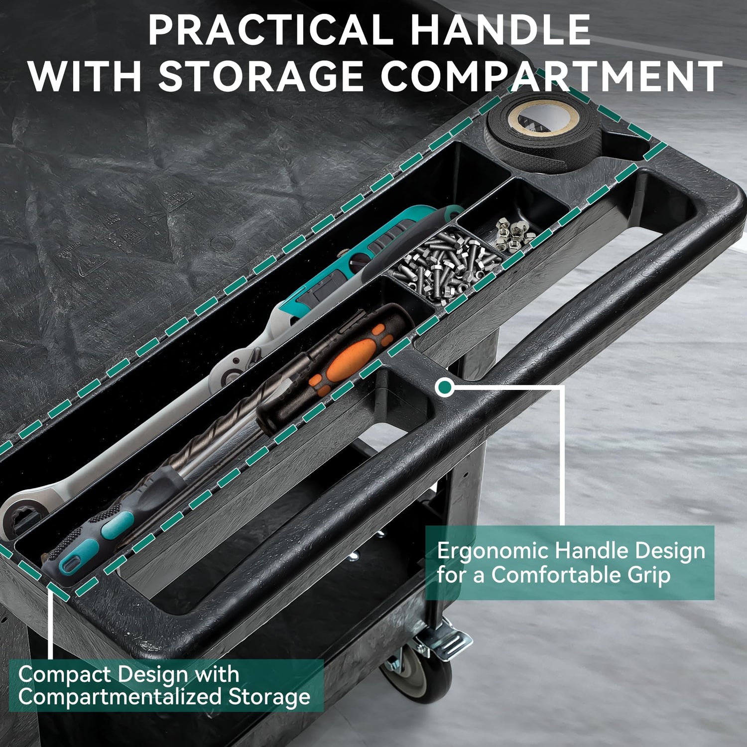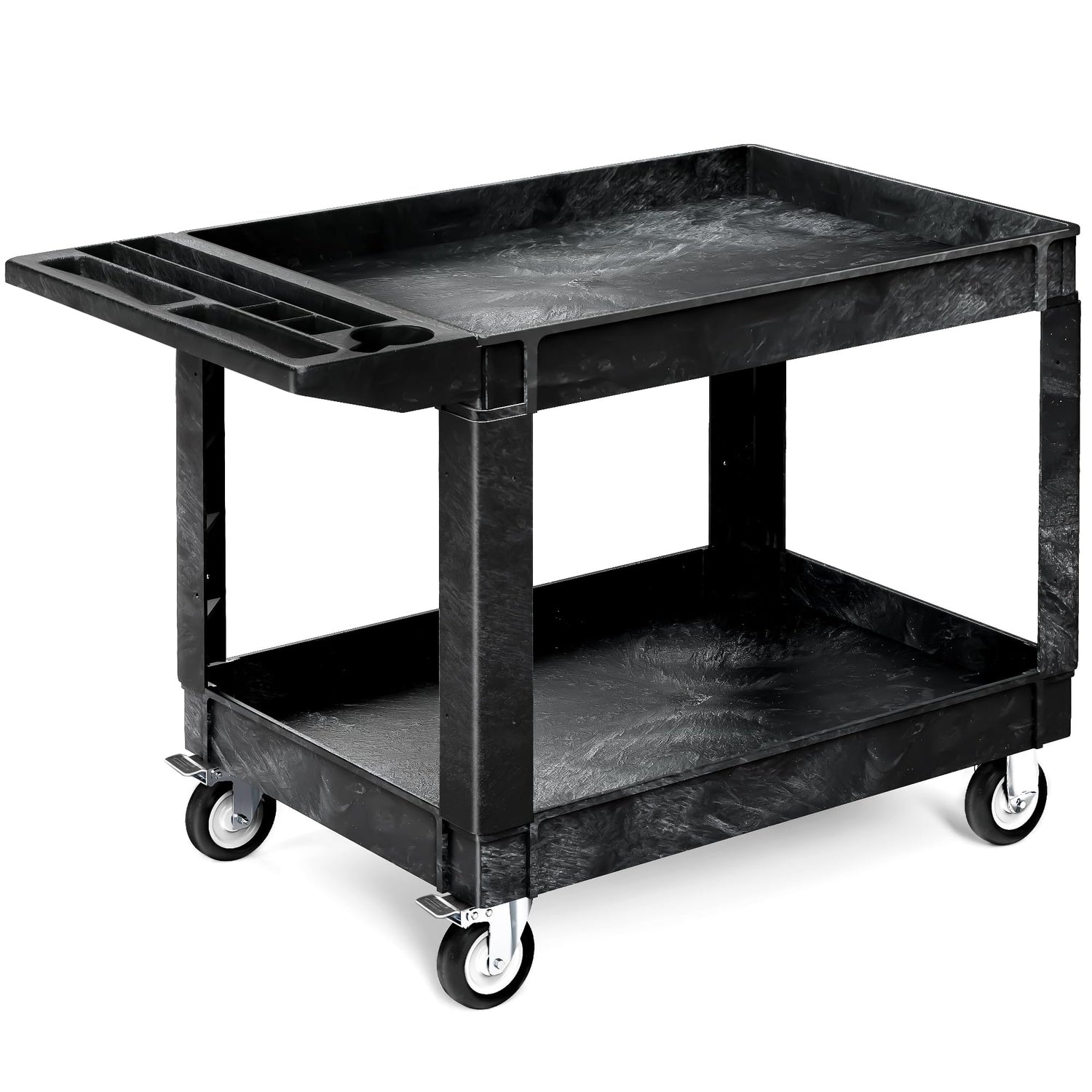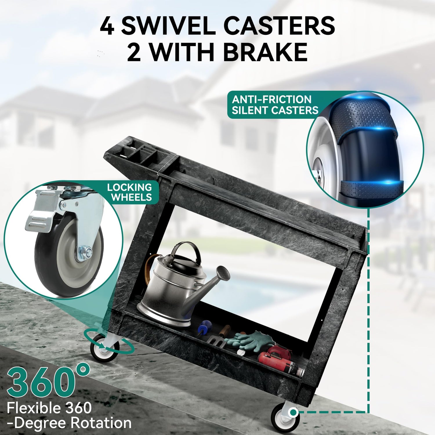 YITAHOME Utility Cart on Wheels, 550 lbs Capacity, 45 x 25 Inch Rolling Work Carts with Wheels, 2 Shelf Heavy Duty Plastic Service Cart Suitable for Warehouse, Garage, School & Office, Cleaning, Black