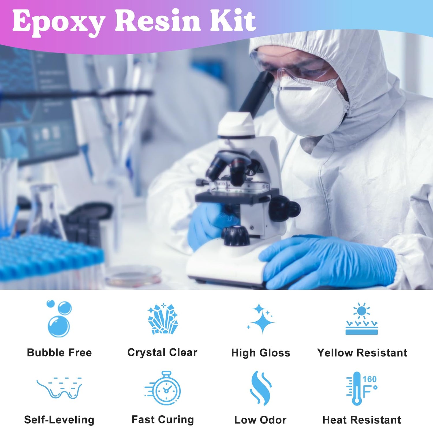 • All in One Epoxy Resin Kit: This resin kit will give some small tools you need to get started with DIY & Craft Ideas, which is very suitable for professional artists or beginners.Includes 0.75 gallon crystal clear resin+0.75 gallon crystal clear epoxy hardener, 10pcs 8oz Measuring Cups, 4pcs Disposable Gloves and 10pcs Stir Stick, comes with a detailed instruction.