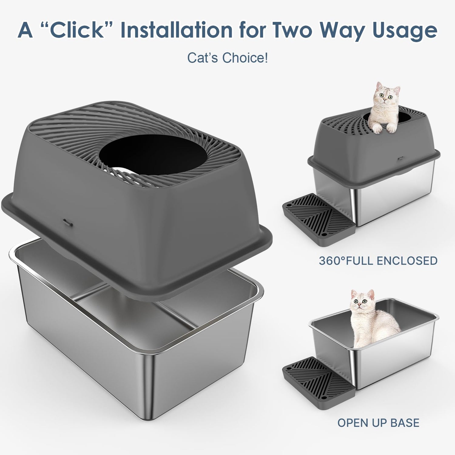 • More Security, More Privacy: This top entry stainless steel cat litter box is designed for multi-pet families, our large cat litter box with high sides provides ultimate privacy and keeps curious dogs out of your cat's area. Make it safer and more comfortable for your beloved cat when doing their business
