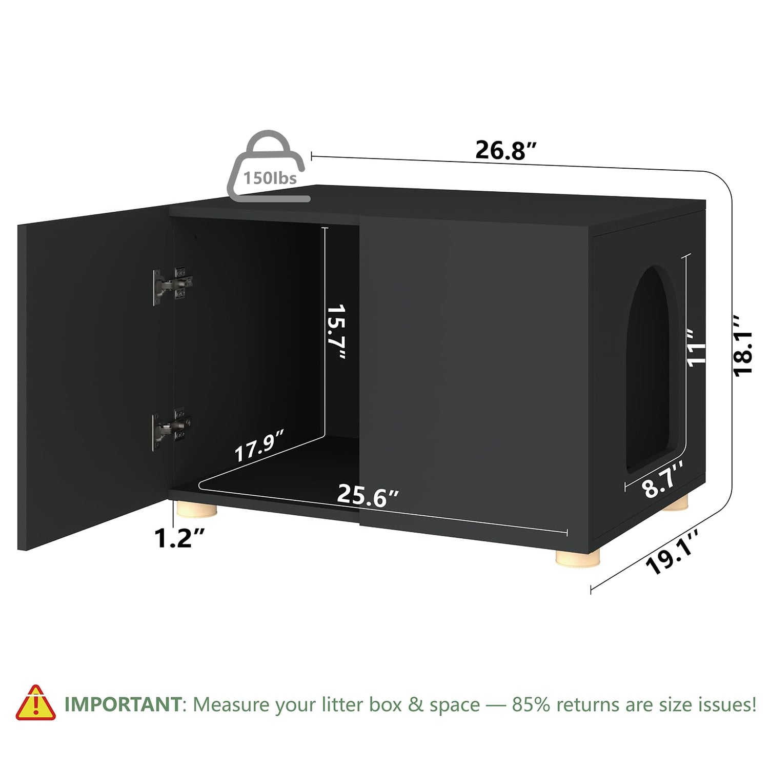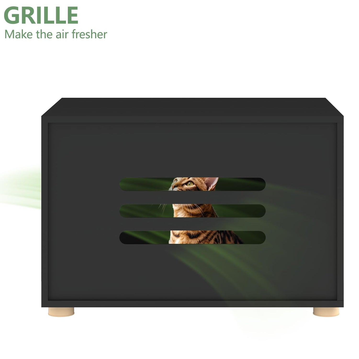 amunrbrek Cat Litter Box Enclosure, Litter Box Furniture, Stylish Modern Litter Box Cabinet, Wooden Cat House, End Table, Nightstand, Black