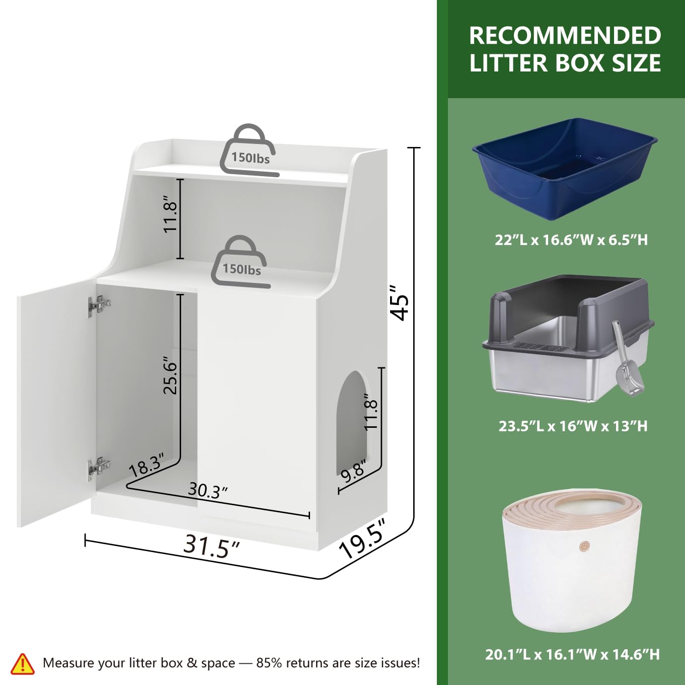 - Spacious Interior (30.3"L x 18.3"W x 25.6"H): Hides all litter box types (even irregular shapes) and accessories like the Litter Genie – zero clutter guaranteed.