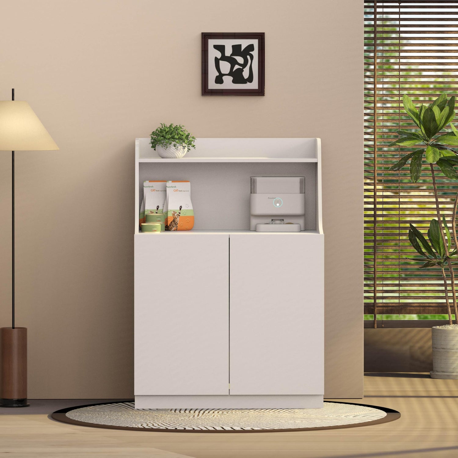- Sturdy & Eco-Friendly: P2-certified particleboard weighs 30% more than competing litter box cabinets for rock-solid stability.