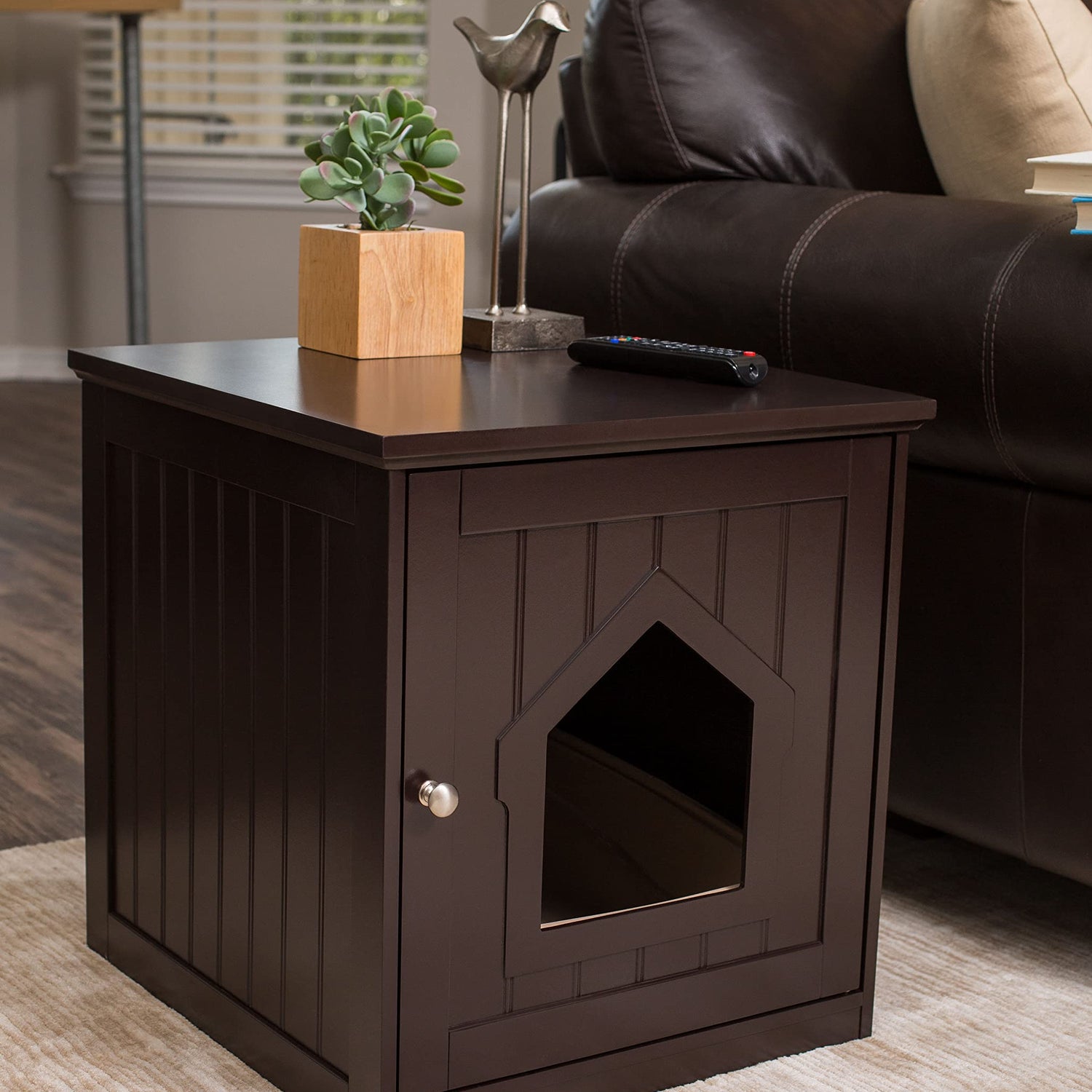 • MULTI-FUNCTIONAL CAT HOUSE: This decorative pet furniture adds a warm and handsome design to any room in the house. Use as a nightstand or side table that doubles as a pet house or litter box enclosure. **Fits litter boxes smaller than 17" W x 18" D x 4" H.**