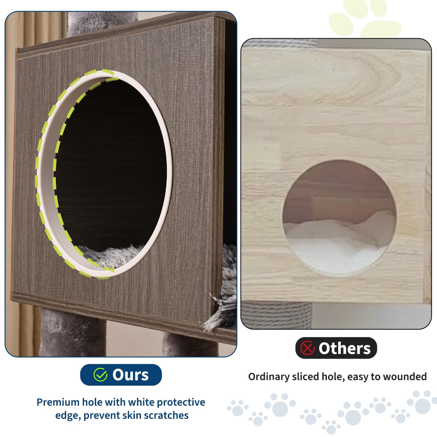 - Multi-Level Design for Play and Relaxation:Offers multiple activity areas, including a spacious plush top perch, a transparent acrylic hammock, an enclosed cat condo, and sturdy jumping platforms, providing endless fun and relaxation for your feline friends