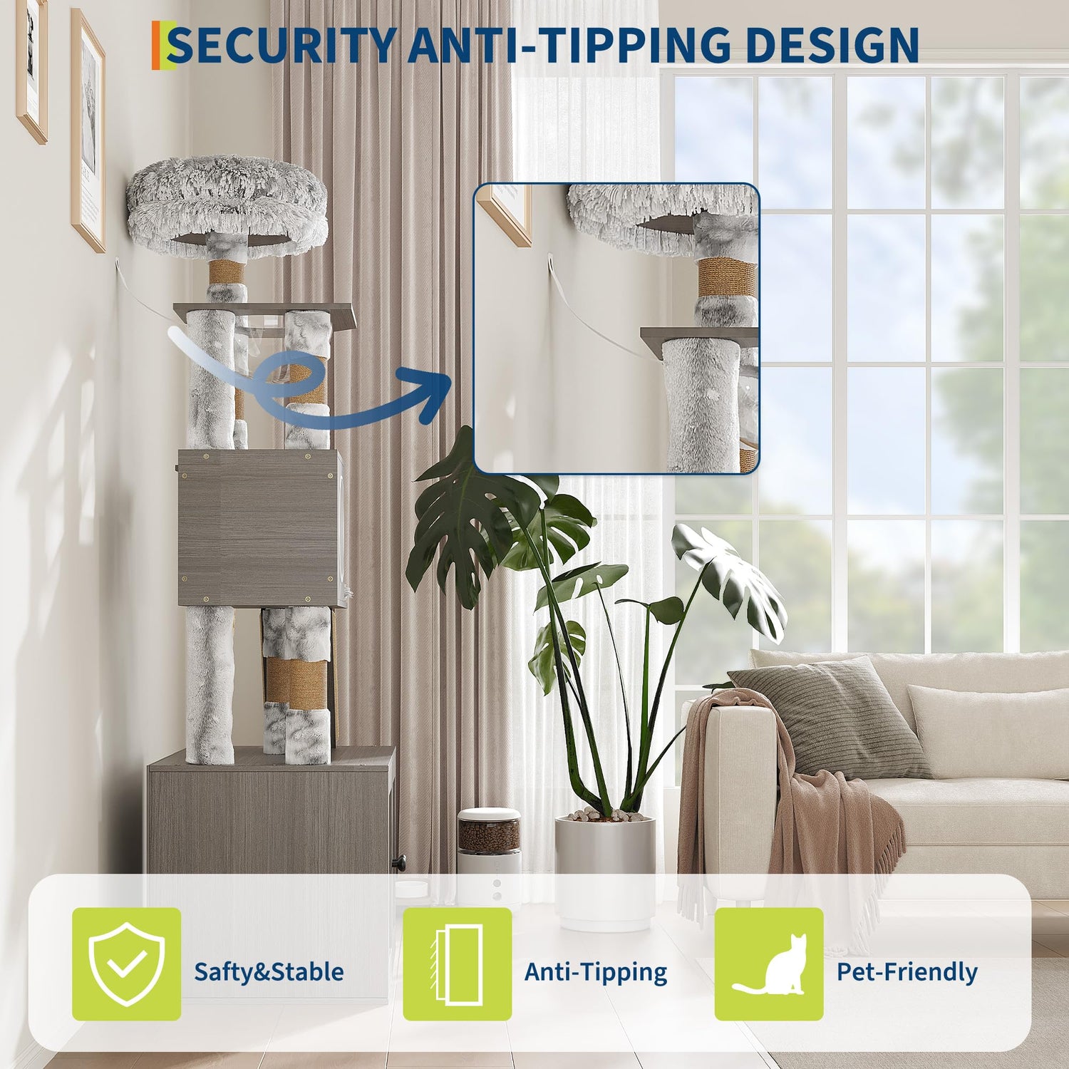 Cat Tree with Litter Box Enclosure, 2-in-1 Cat Tower, 66.9-Inch Tall Cat Condo with Scratching Posts, Perch (Grey)
