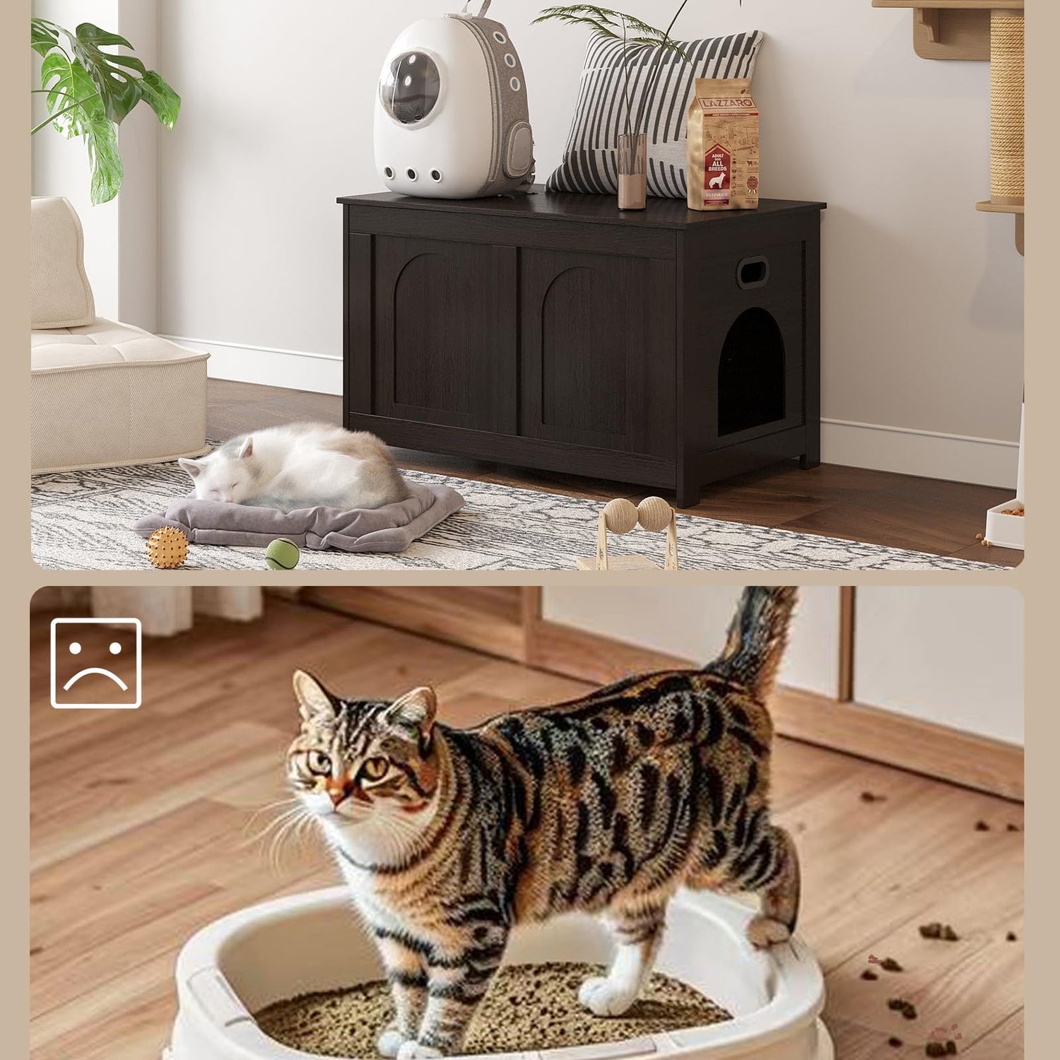 • 【More Privacy, More Love】A calm and private environment is crucial for a cat's well-being. The sturdy cat litter furniture gives cat a secluded space, providing a sense of privacy and security. It also shields cats from external disturbances like dogs and kids. Cat entrance can be installed on the left or right for your convenience