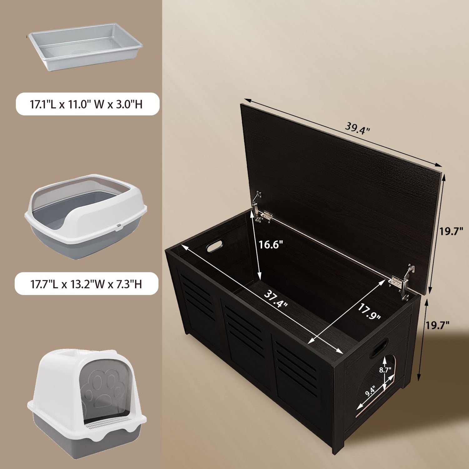 • 【Small Body, Great Capacity】Spacious cat litter furniture with large entrance fits most of common litter box. Free movement space allows your pet to come and go as she/he pleases. Also protect the territory of cat from being violated by dog, which greatly enhances the happiness of the cat. Dimension: 39.4"L x 19.7"W x 19.7"H