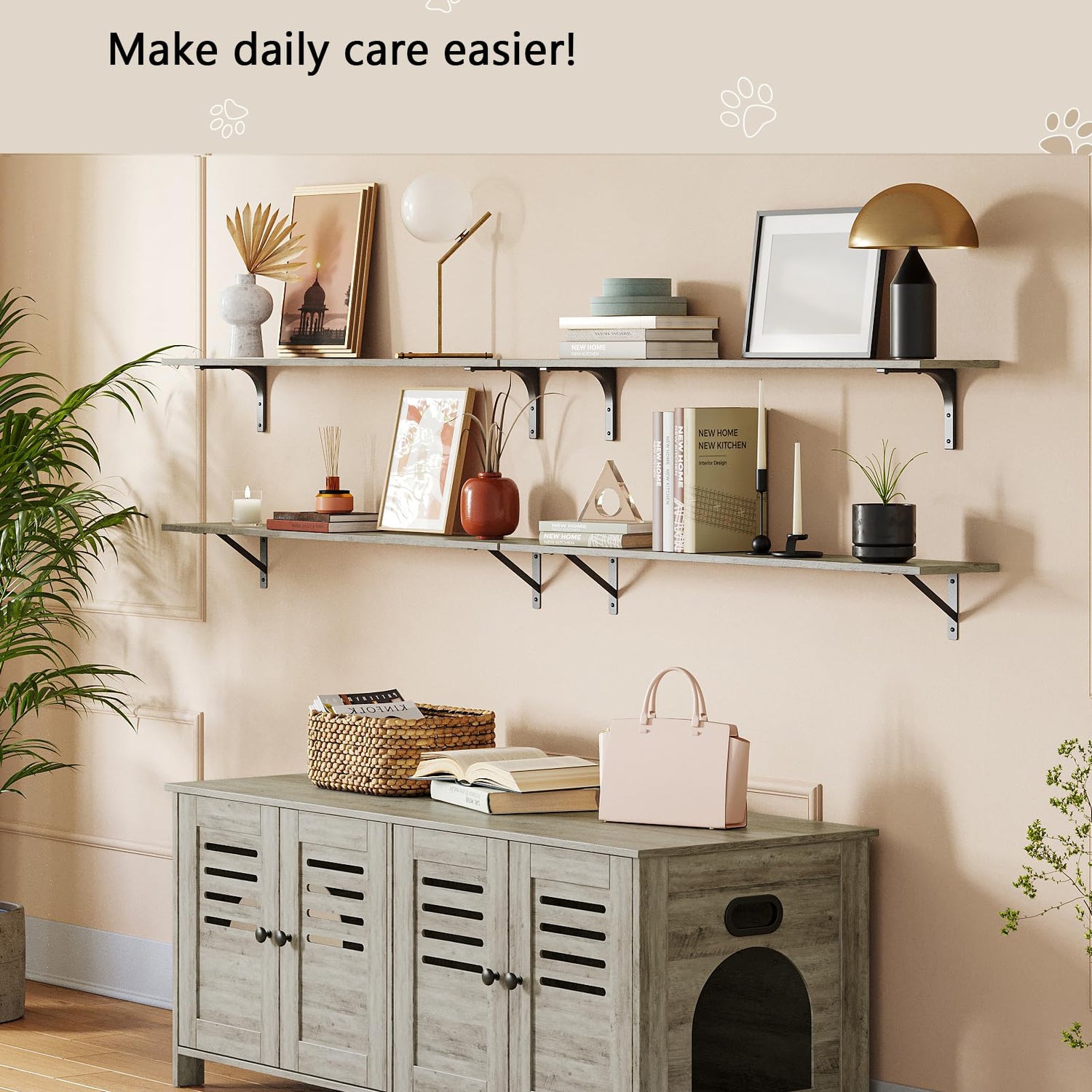 - 【High-quality Materials】The hidden litter box enclosure is made of solid particle board for safe and durable. An extra support leg is set at the bottom to enhance the firmness and stability. Each cabinet comes with a magnetic front door for easy daily care. Size: 47.2"L x 18.7"D x 19.7"H (120 x 47.5 x 50 cm)