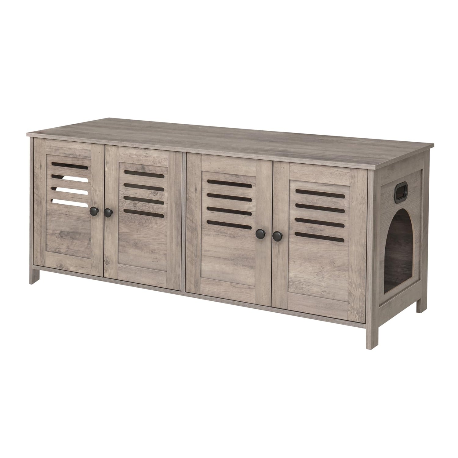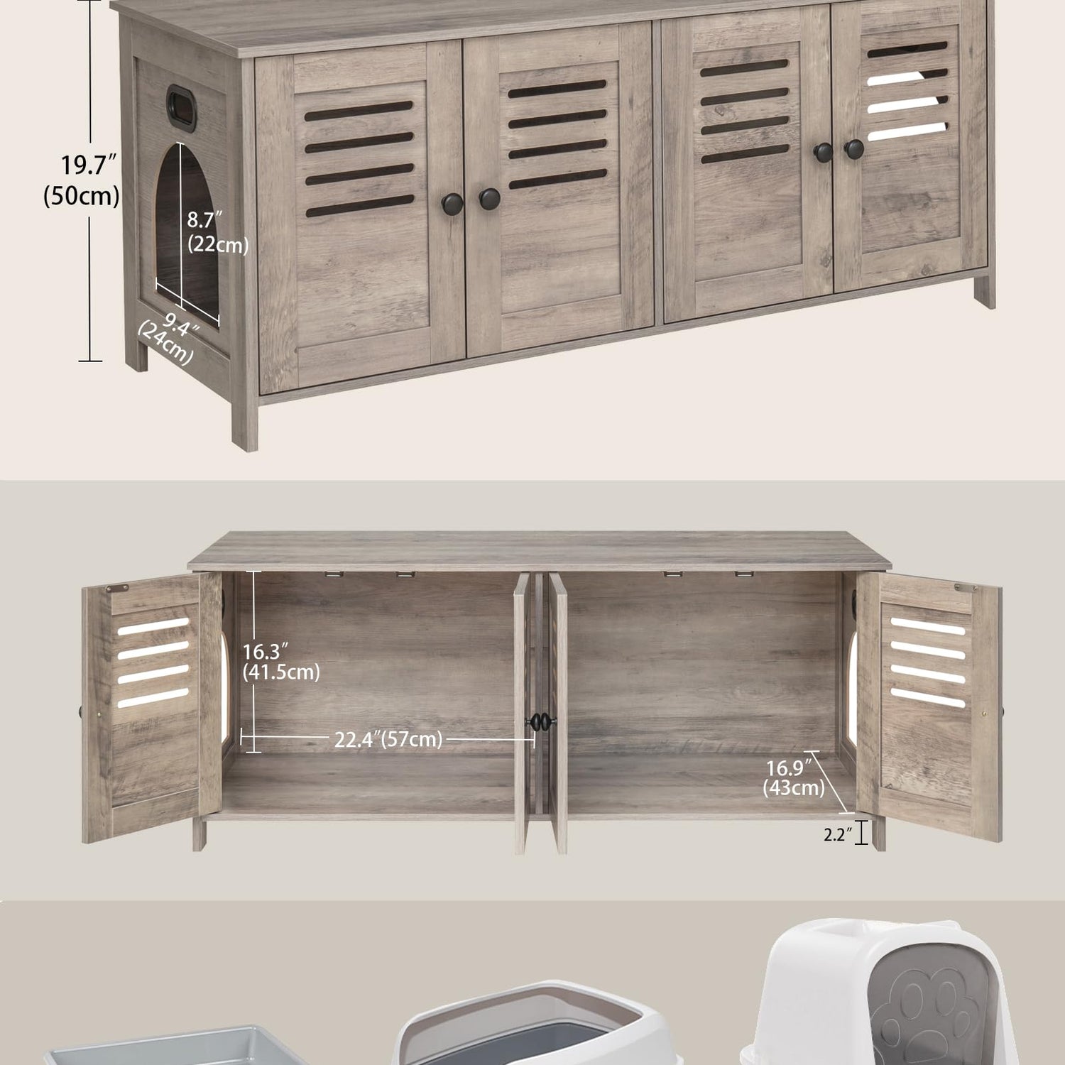- 【Good Ventilation Is Essential】More than a cat washroom bench, a leisure area and a resting zone for your kitty as well. Louvered doors create low-light environment for sensitive cats to feel safe and secure, allowing cats to enjoy fresh air and soft light while resting and playing