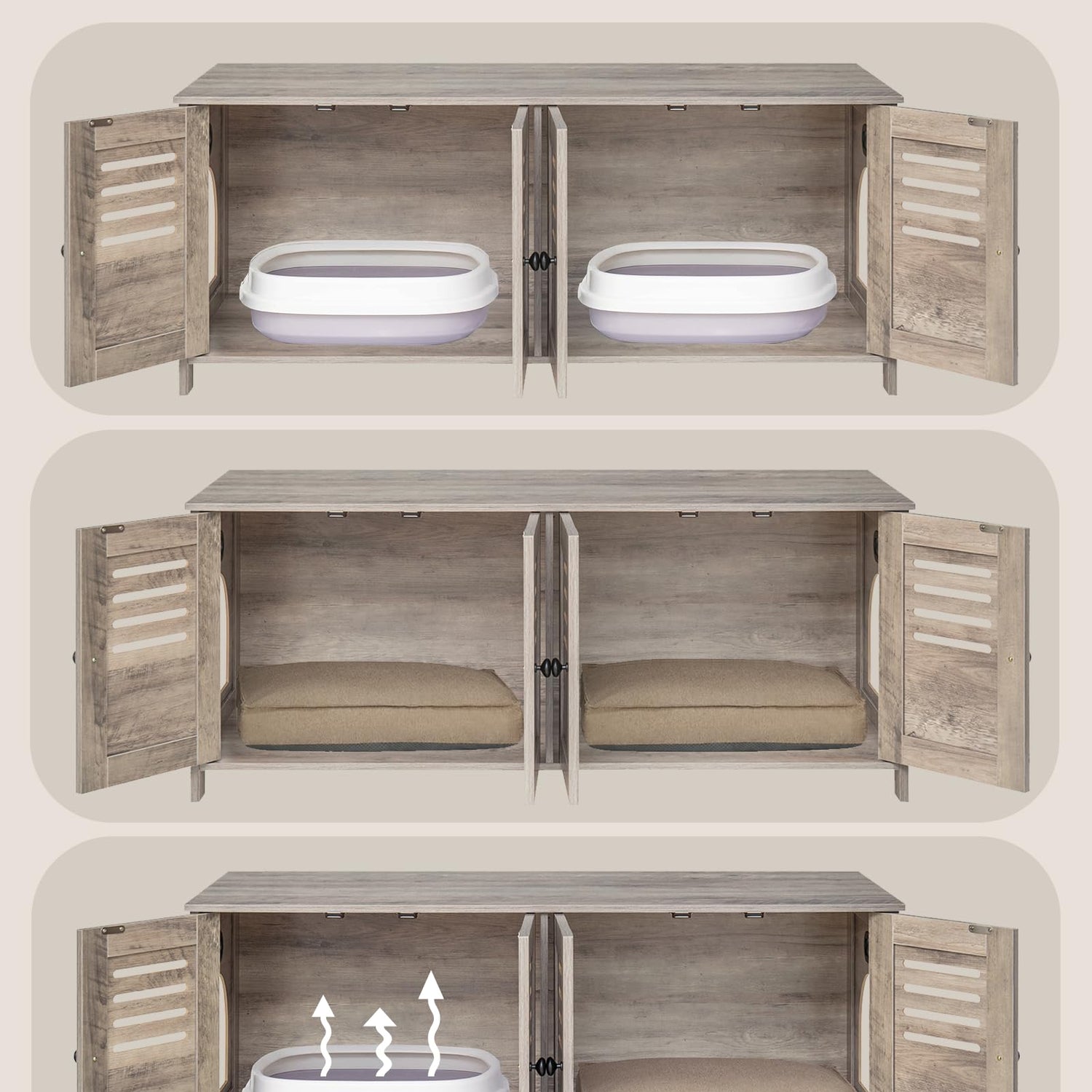 - 【Dual-Room for 2 Cats】Double rooms hidden litter box furniture features 2 large openings on both sides, allowing your pet to enter and exit freely. Spacious interior space can easily accommodate 2 cats and fits most of common litter box. The best choice for multi-cat family