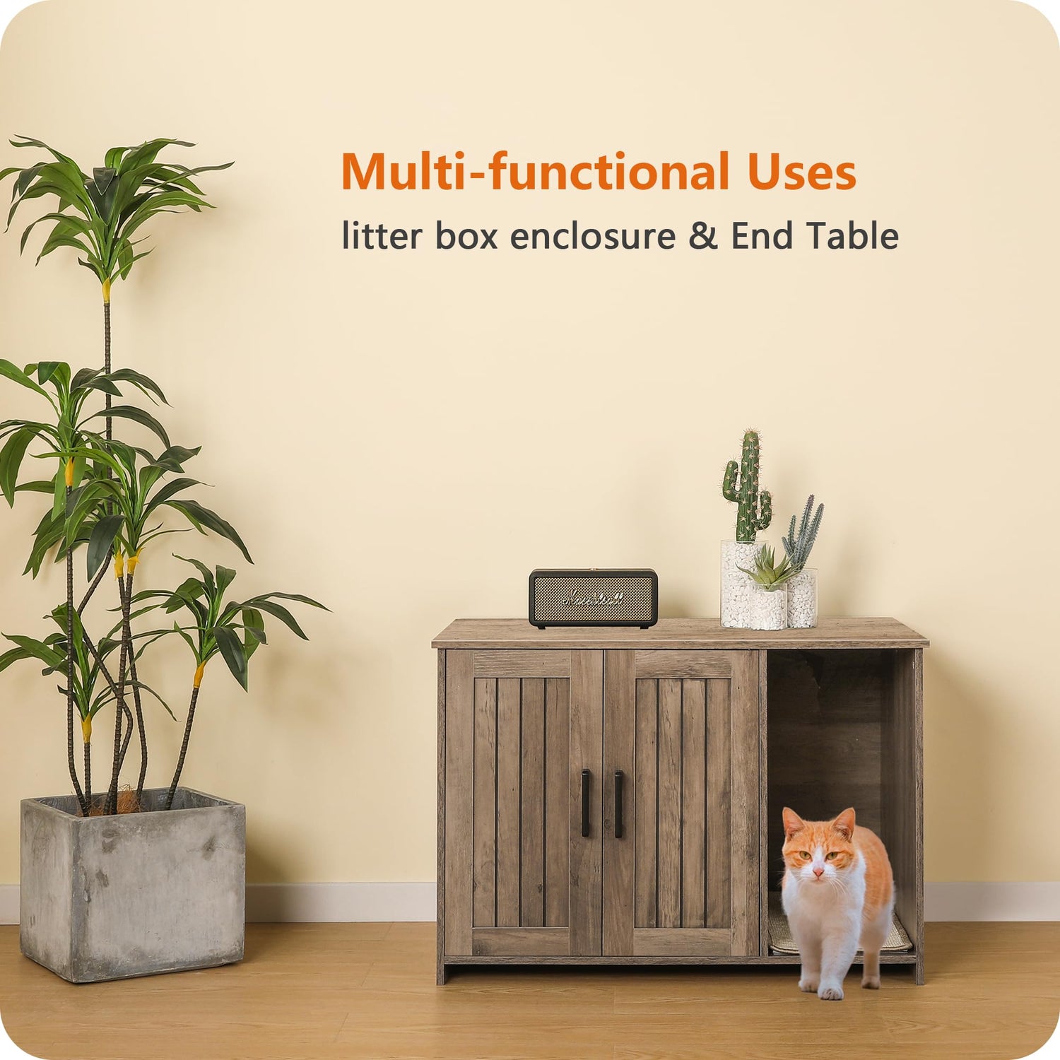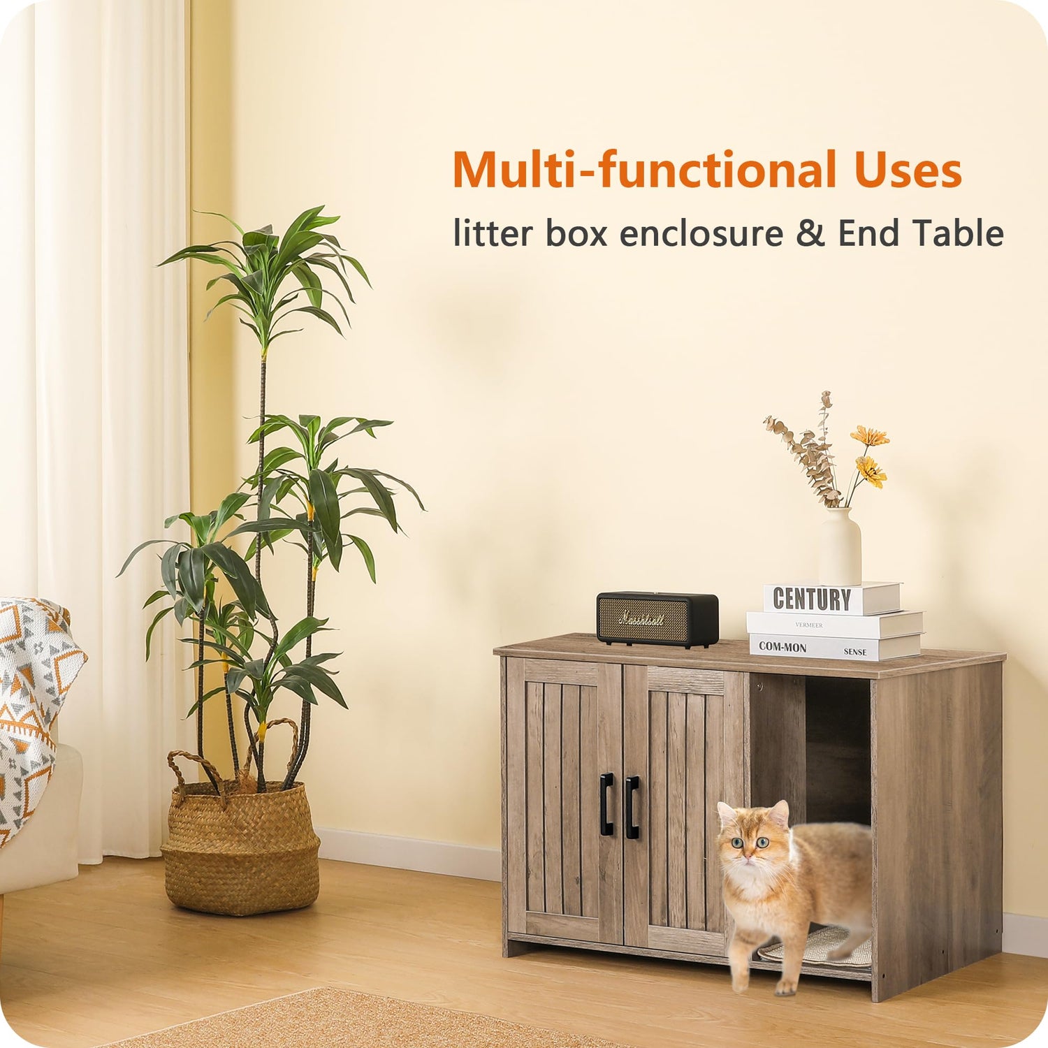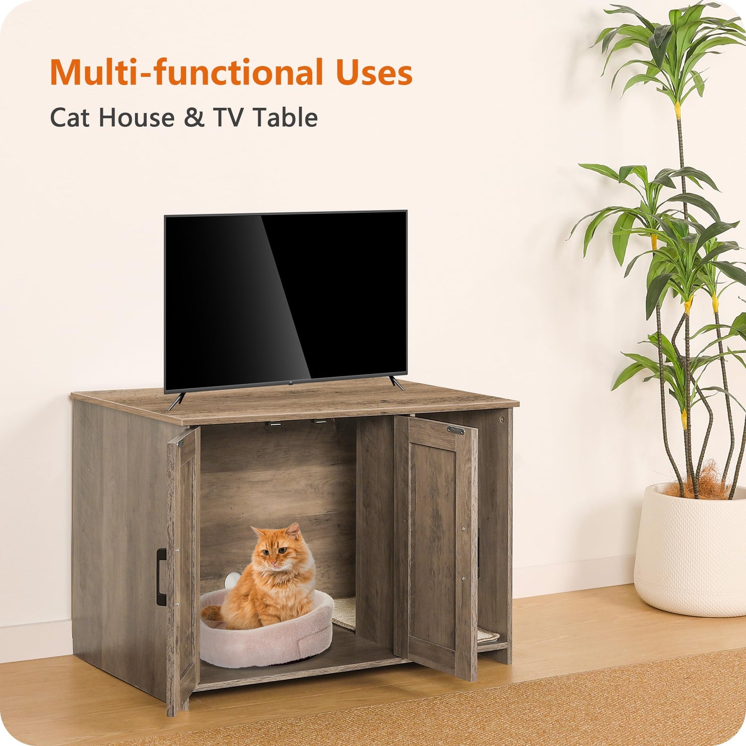 - 【Furniture Style, Wider Usage】Minimalist greige design matches your home decor perfectly. It is not only a litter box enclosure, but also can be used as a cat house. Meanwhile, thanks to its stylish furniture style, you can also use it as a TV stand or a coffee table next to the sofa!