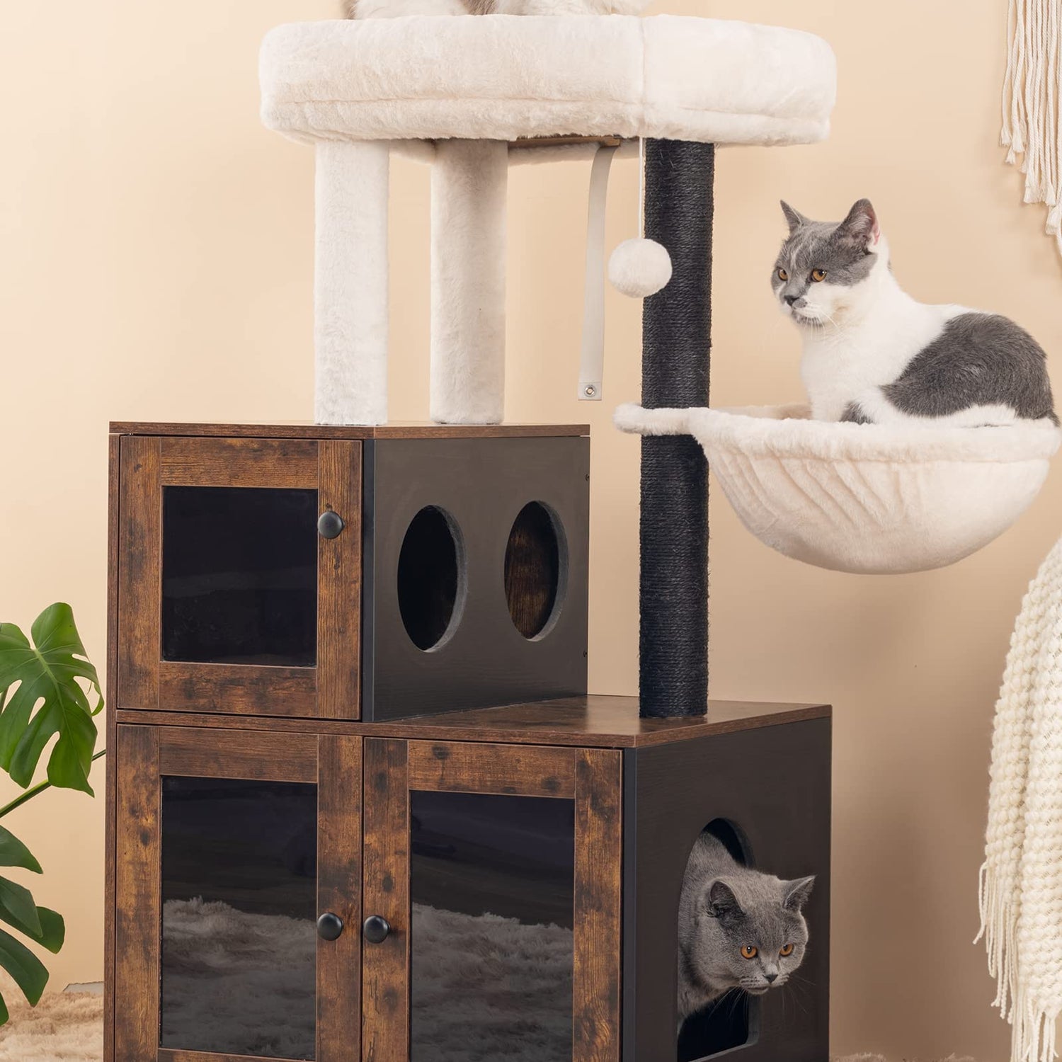 • Two Functions in One, One is Divided into Two: a piece of furniture that meets two needs: cat litter box enclosure and cat tree, and saves twice the home space, which is more practical; it can be used in different scenarios, and it can also be used separately;