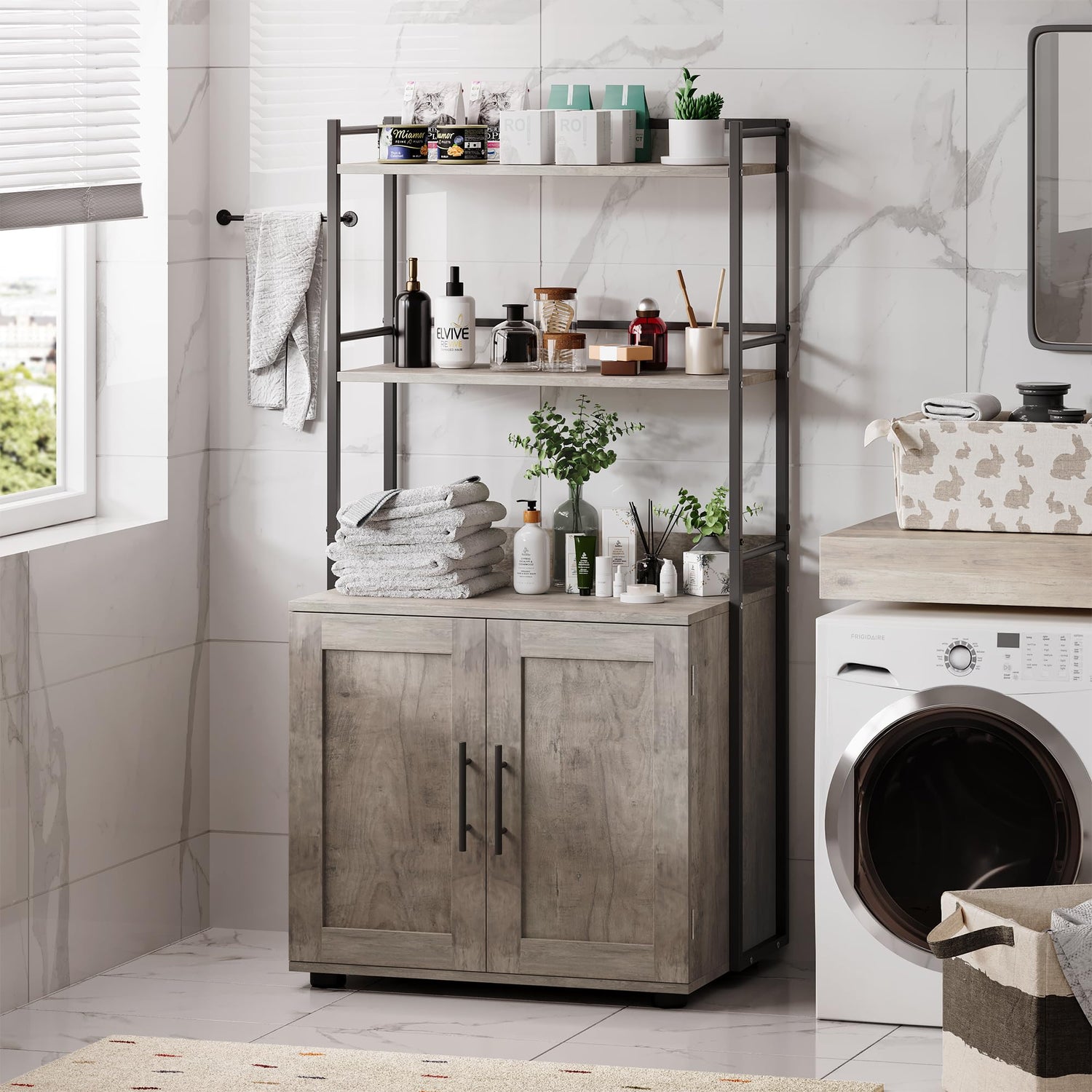 GAOMON Cat Litter Box Enclosure with Shelf Storage, 2-in-1 Hidden Cat Washroom Furniture, Indoor Cat Cabinet, Hidden Cat Box Enclosure with 3 Shelves and Door, Cat House for Most Litter Box, Grey