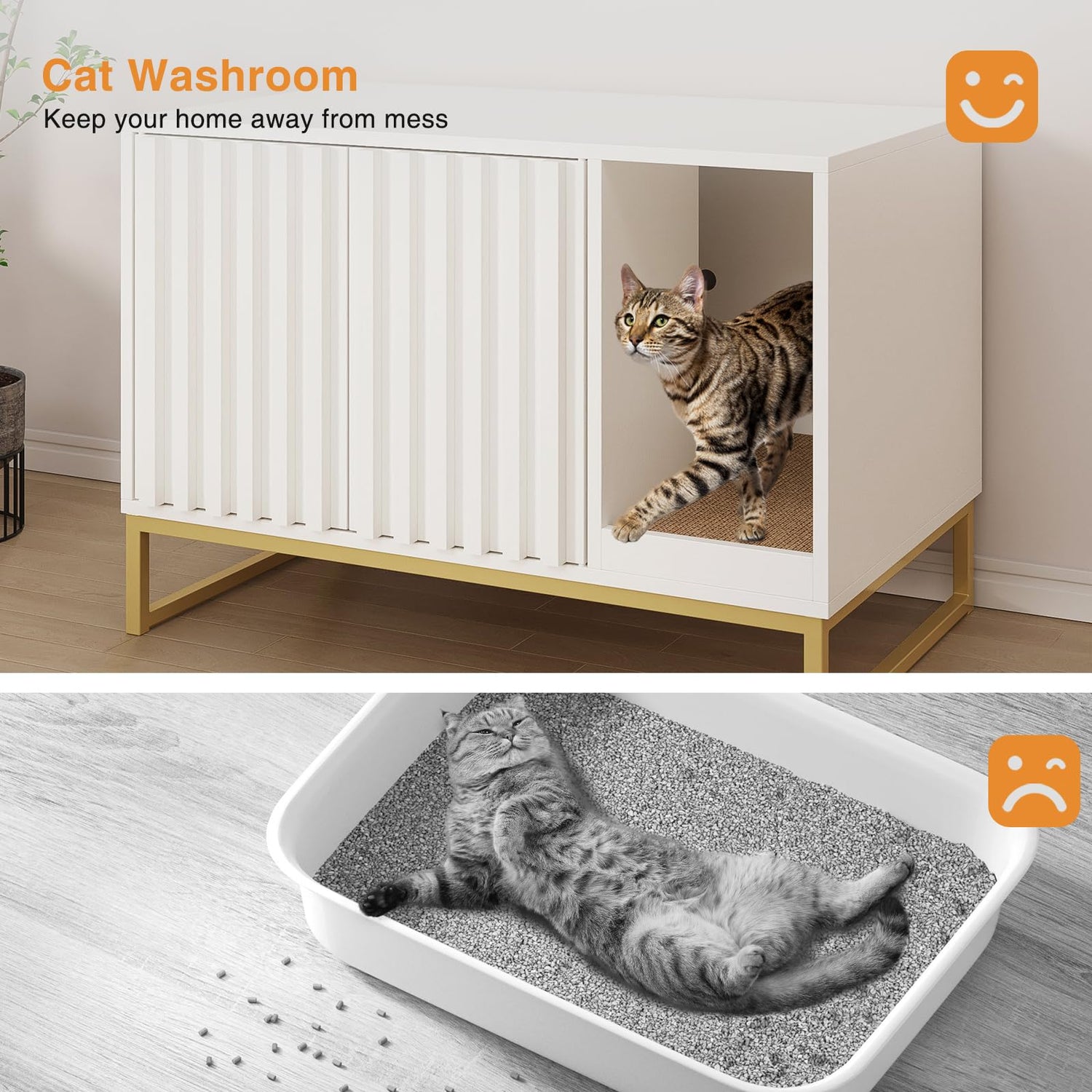 - Versatile Cat Litter Box with Countertop:Our multi-functional cat enclosure litter box is designed with a spacious countertop, perfect for show casing potted plants, magazines, lamps, or your favorite collectibles. It's a versatile addition that can function as a pet house, end table, storage cabinet, or entryway bench, it's also the ideal spot for small pets to rest and play.