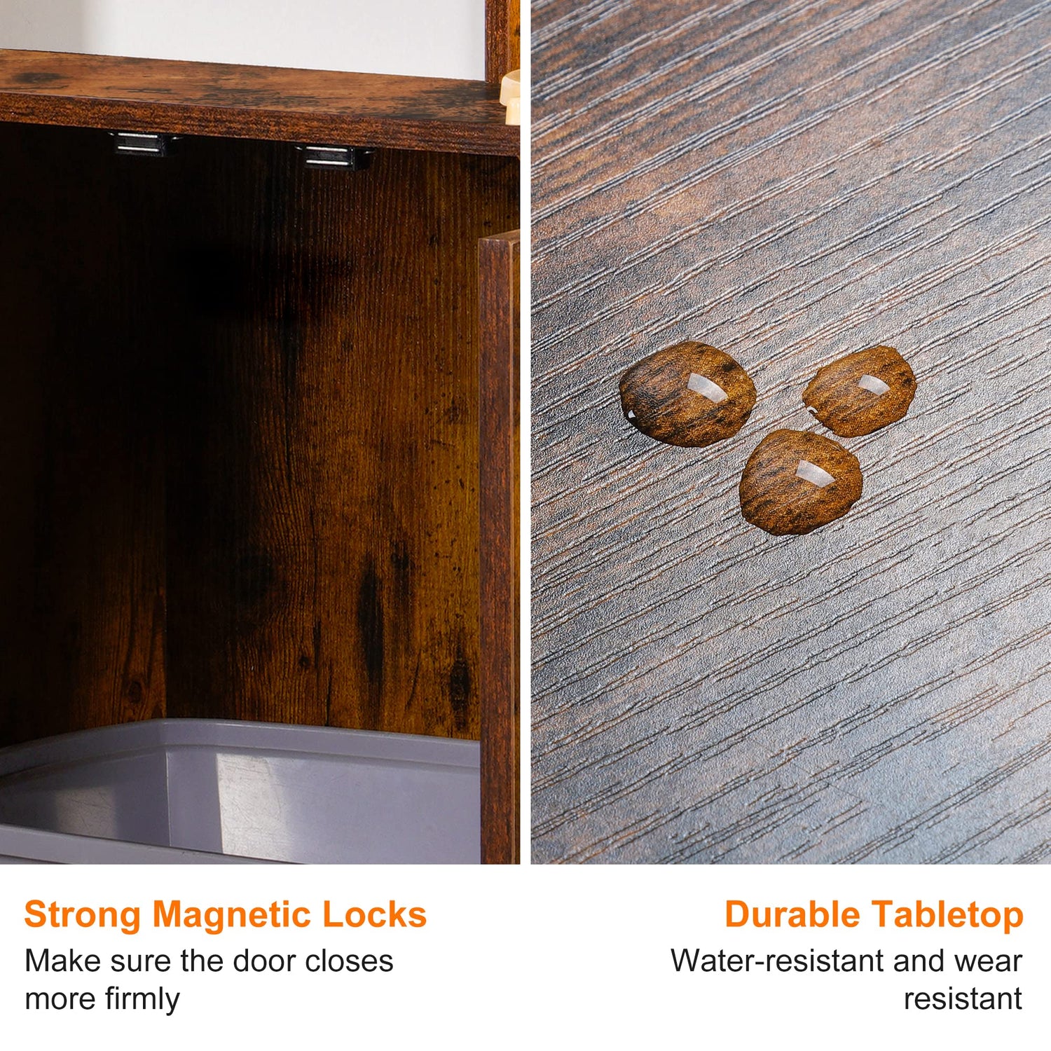 - Thoughtful Details: The litter box room doors are magnetic, cats cannot easily open doors from the inside. Door designed with vents, bring fresh air and soft light in. Adjustabel feet keep the entire cat tower stable while protecting the floor from scratches.