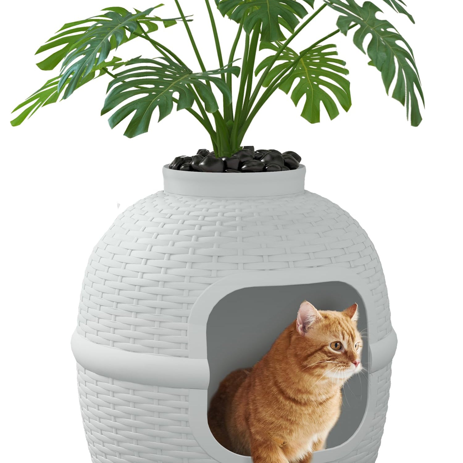 - 【Rattan Style & Diy Various Plants】This litter box furniture is designed with a unique rattan style, fashionable and elegant, in line with most room design styles. In addition to providing comfort and safety for cats, this cat litter box furniture can also add a beautiful atmosphere to the room. What's more, you can DIY all kinds of plants you like at the top, making your litter box furniture more unique.