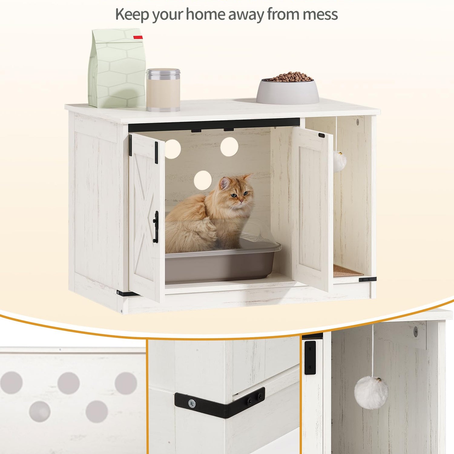 Hzuaneri Cat Litter Box Enclosure, Hidden Litter Box Cabinet Furniture with Bell, Indoor Cats House, Farmhouse Style, 31.5 x 19.7 x 20.9Inches, for Hallway, Bedroom, White CB82414B