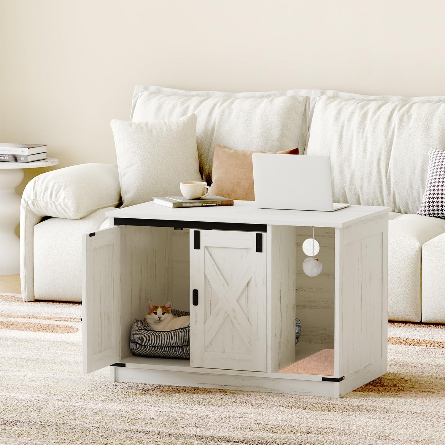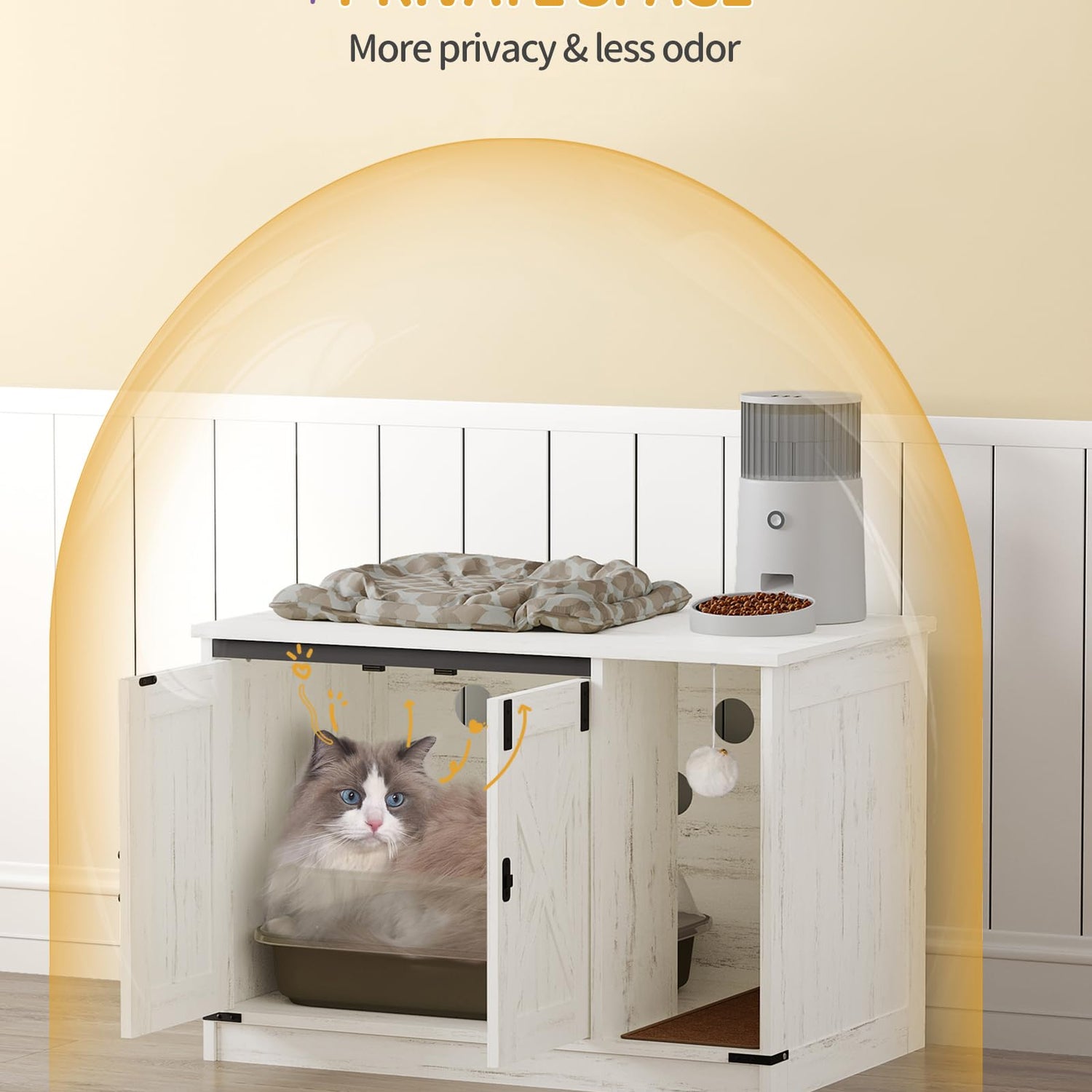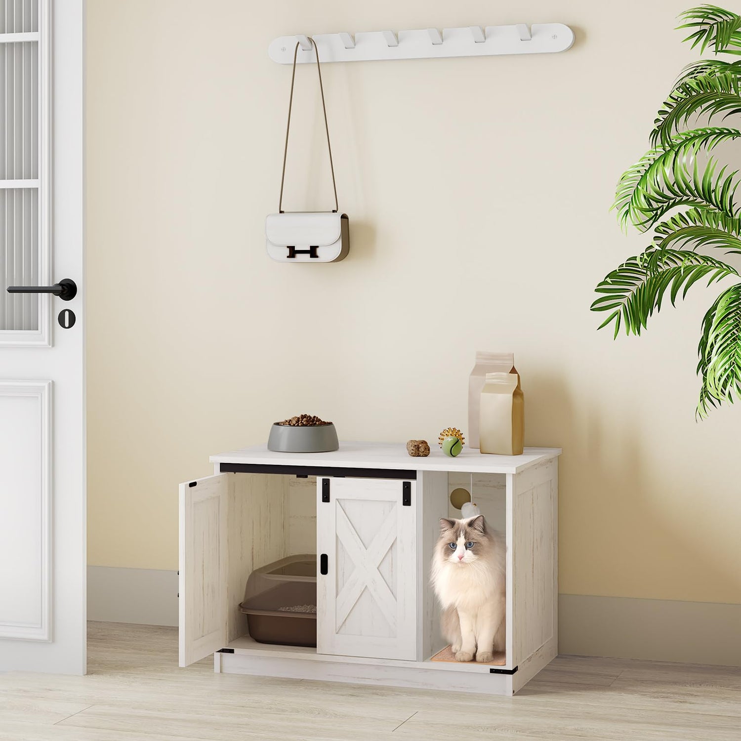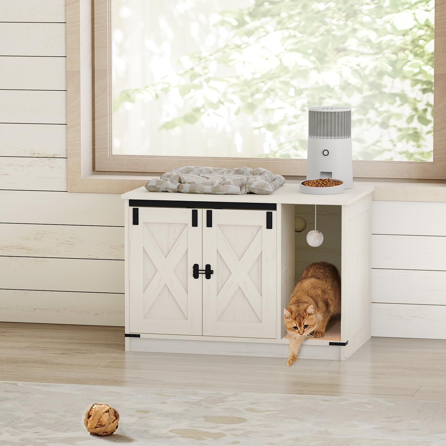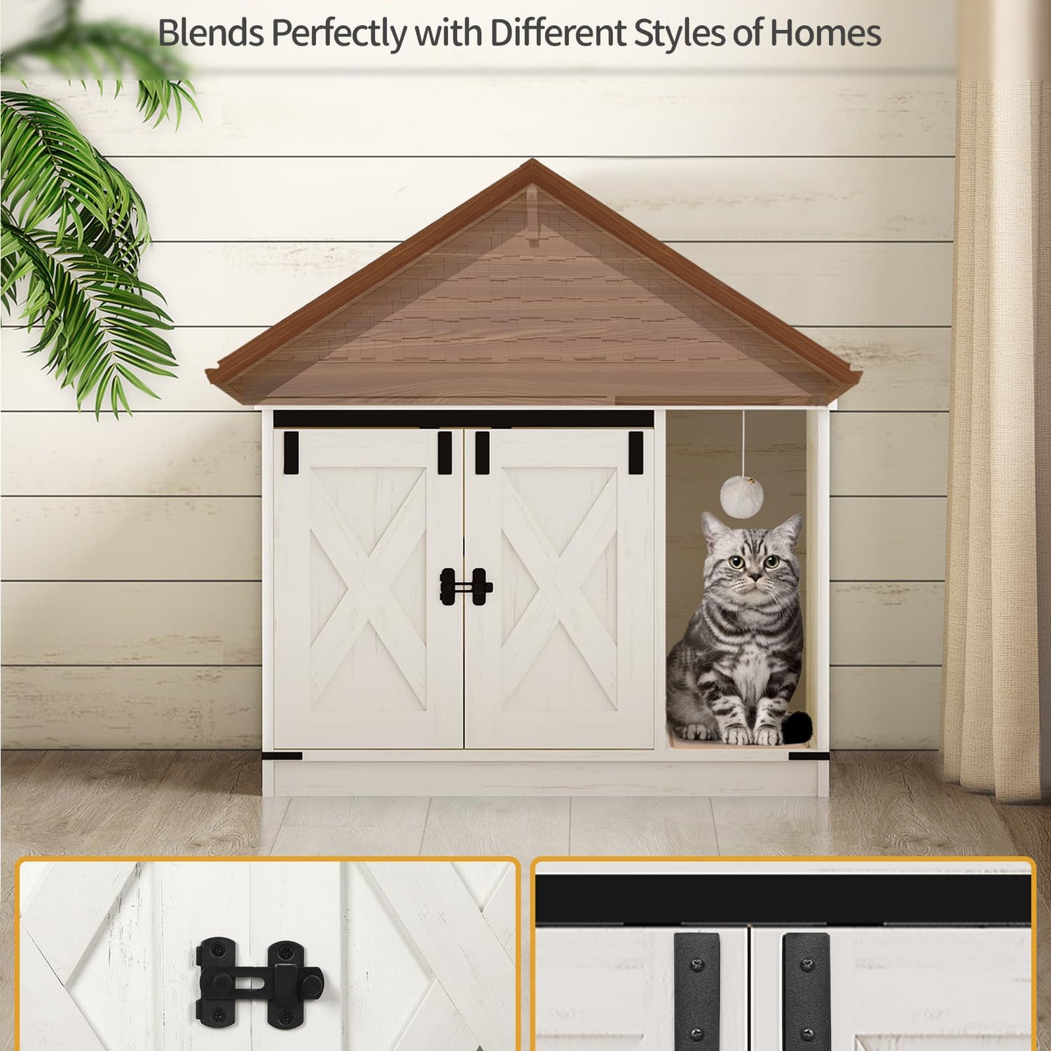 - The Perfect Blend of Family: This rustic style and unique barn door shaped litter box cabinet can be used as a cat litter box or as a finished cat house, giving your cat a comfortable home