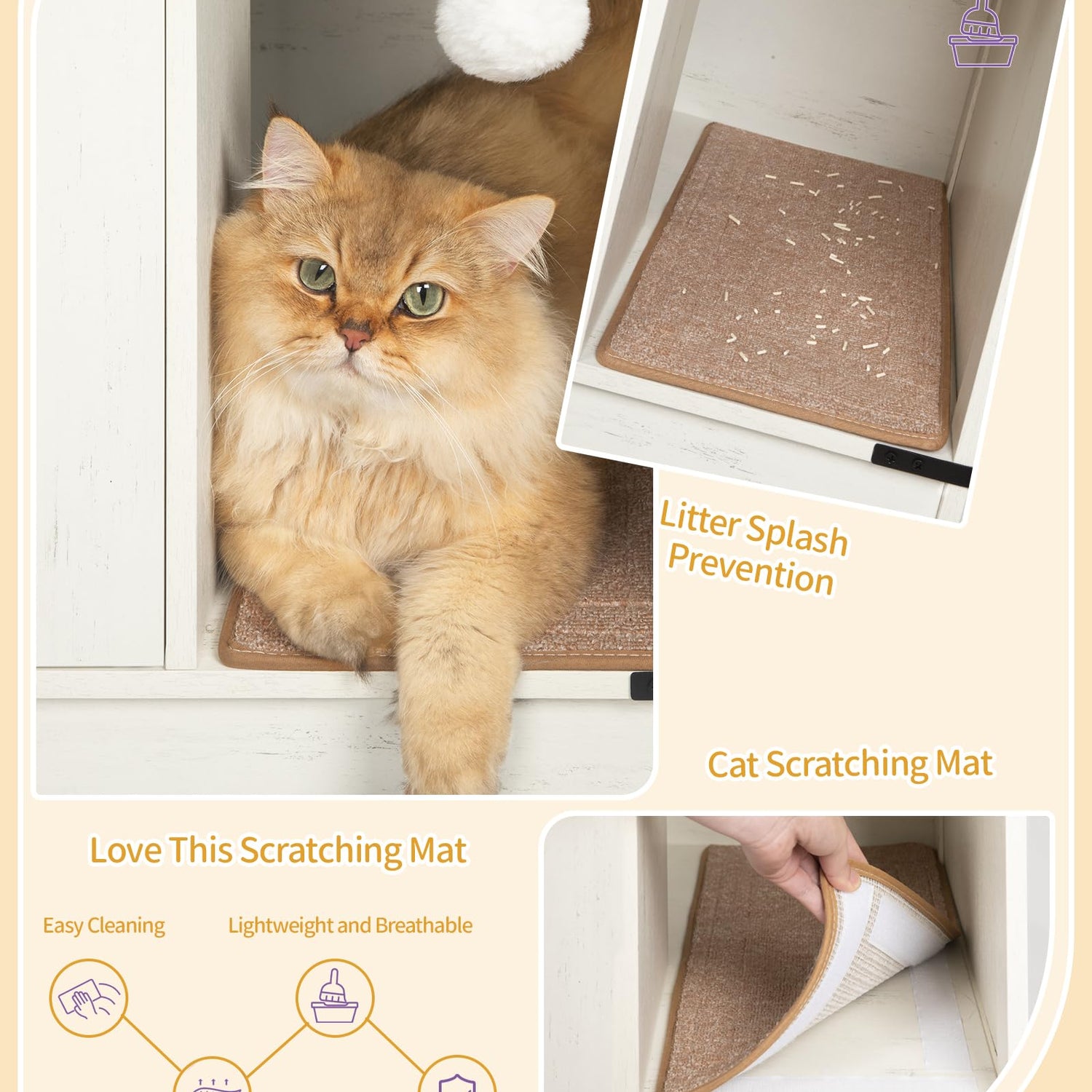 - Rich Features: Carpet inside the litter box to prevent litter from flying around; cat scratching ball with bell to keep cats playing happily; sturdy latch that won't open awkwardly on its own