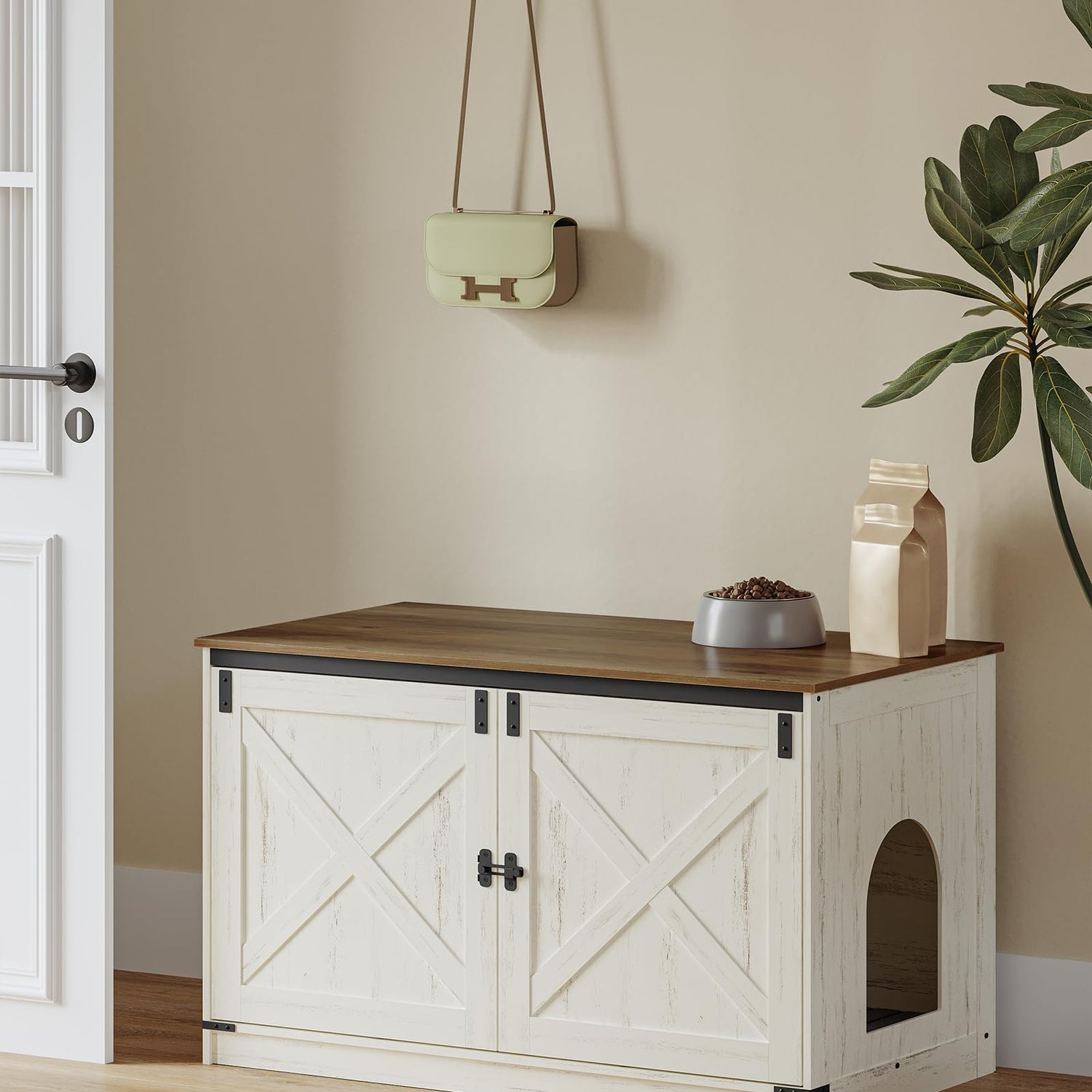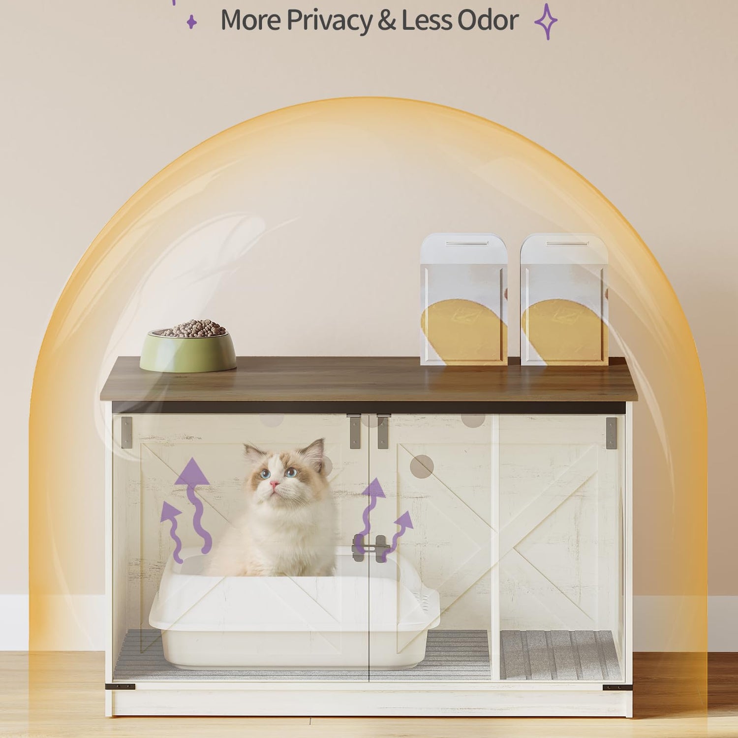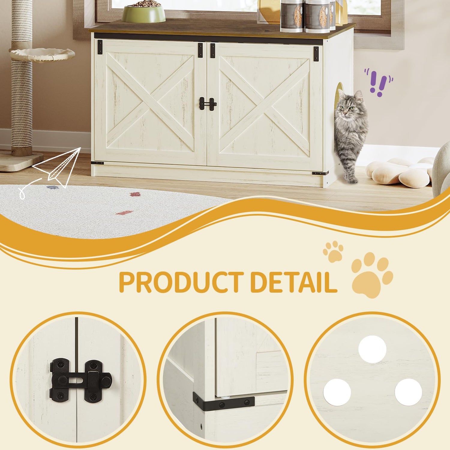 - Multi Purpose Pet Furniture: It is not only a cat litter box enclosure, but can also be used as a side table next to a cat house or sofa. The rustic style and unique barn door design easily blend into most home decor styles