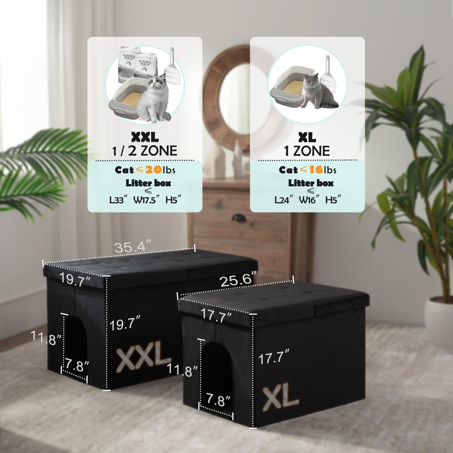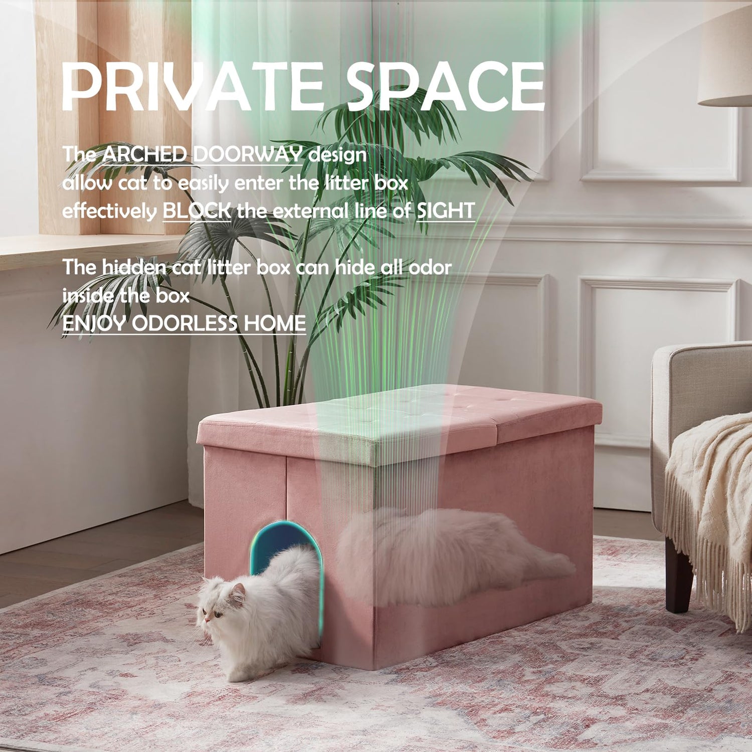 - 【Stylish Furniture in Velvet for More Use】Featuring the luxury velvet material and stylish design with lift desgin lid, this litter box enclosure easily blends in with your home. It hides cat litter boxes to contain all lingering stink and also works great as footstool and storage ottoman or bench