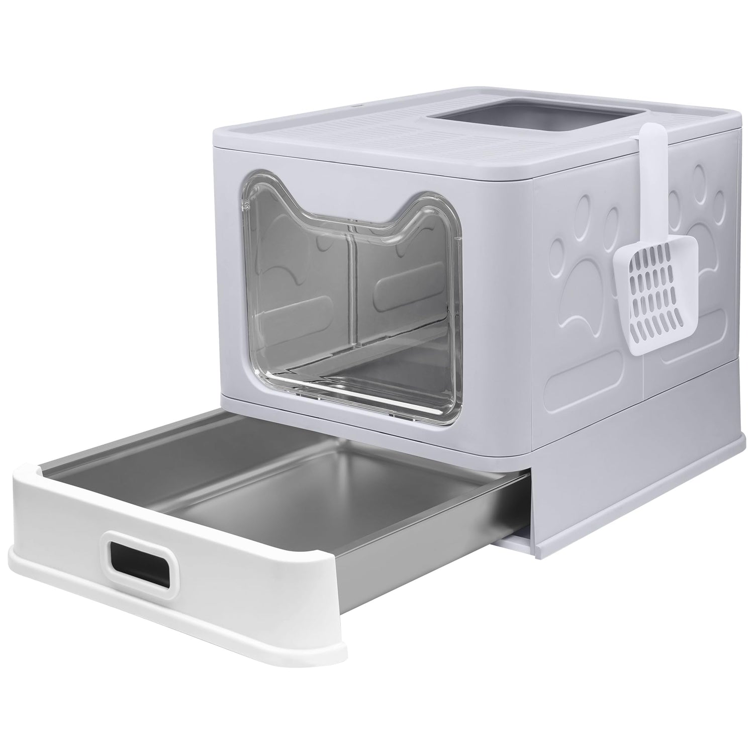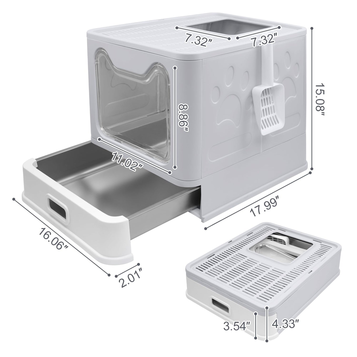 Modign Stainless Steel Litter Box with Lid,Large Foldable Litter Box with Lid,Covered Top Entry Litter Boxs,Enclosed Cat Litter Boxs with Litter Scoop for Big and Small Cats(Gray)