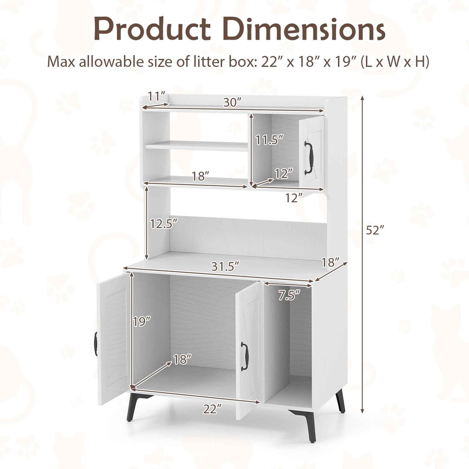 - Easy Maintenance: The hidden litter box with storage shelf measures 31.5" x 18" x 52"/ 80 x 45 x 132 cm (L x W x H) and the maximum allowable size of litter box is 22" x 18" x 19"/56 x 45.5 x 48 cm (L x W x H). It adopts waterproof veneered wood boards and a double-door cabinet, making cleaning a breeze.