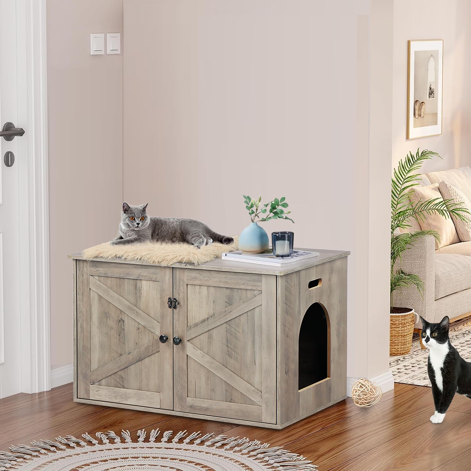 - Multifunctional Litter Box Enclosure - This litter box cabinet fits anywhere in your room. Not only practical but will also be an ornament that adds a warm farmhouse vibe to your home. With simple and clear instructions and part numbers, you to overcome the fear of assembly.