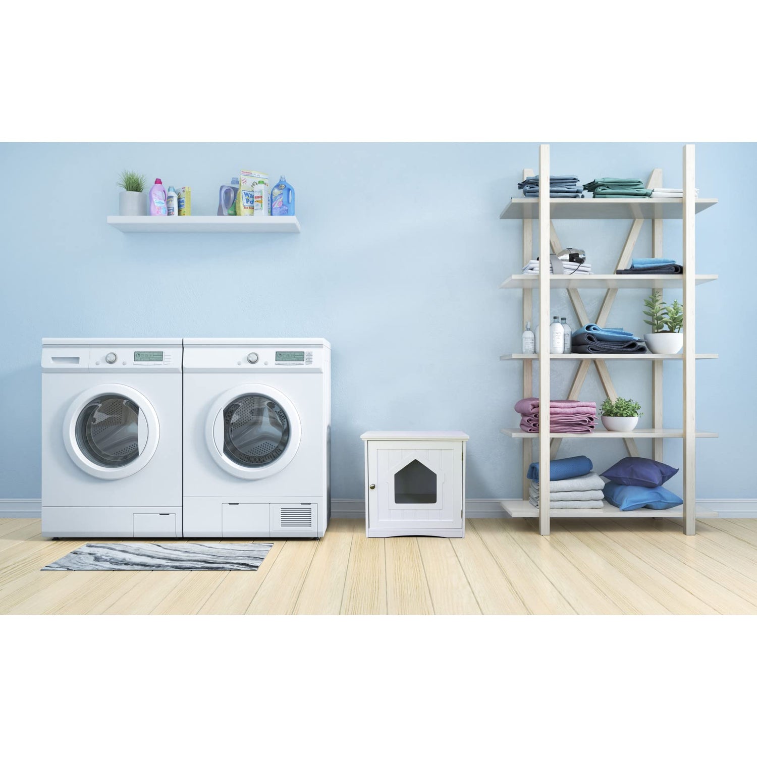 - An attractive enclosure to hide away your cat's litter box and confine any unsightly messes