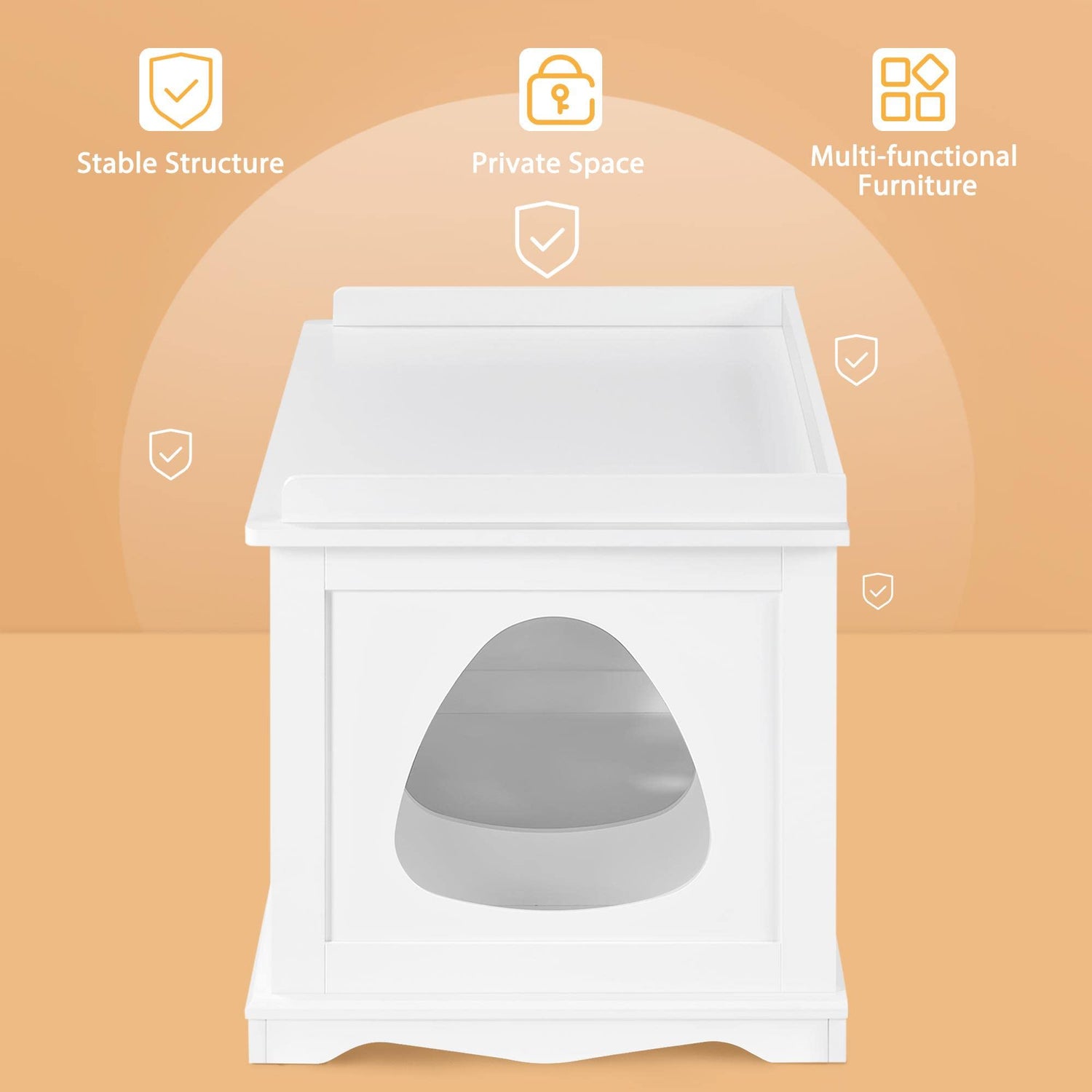 - TWO-DOOR DESIGN: The cat house is designed with a convenient 2-door feature that allows easy access for placing a cat bed or cleaning the interior. The door is equipped with a safety latch to prevent the cat from opening it and spilling the litter