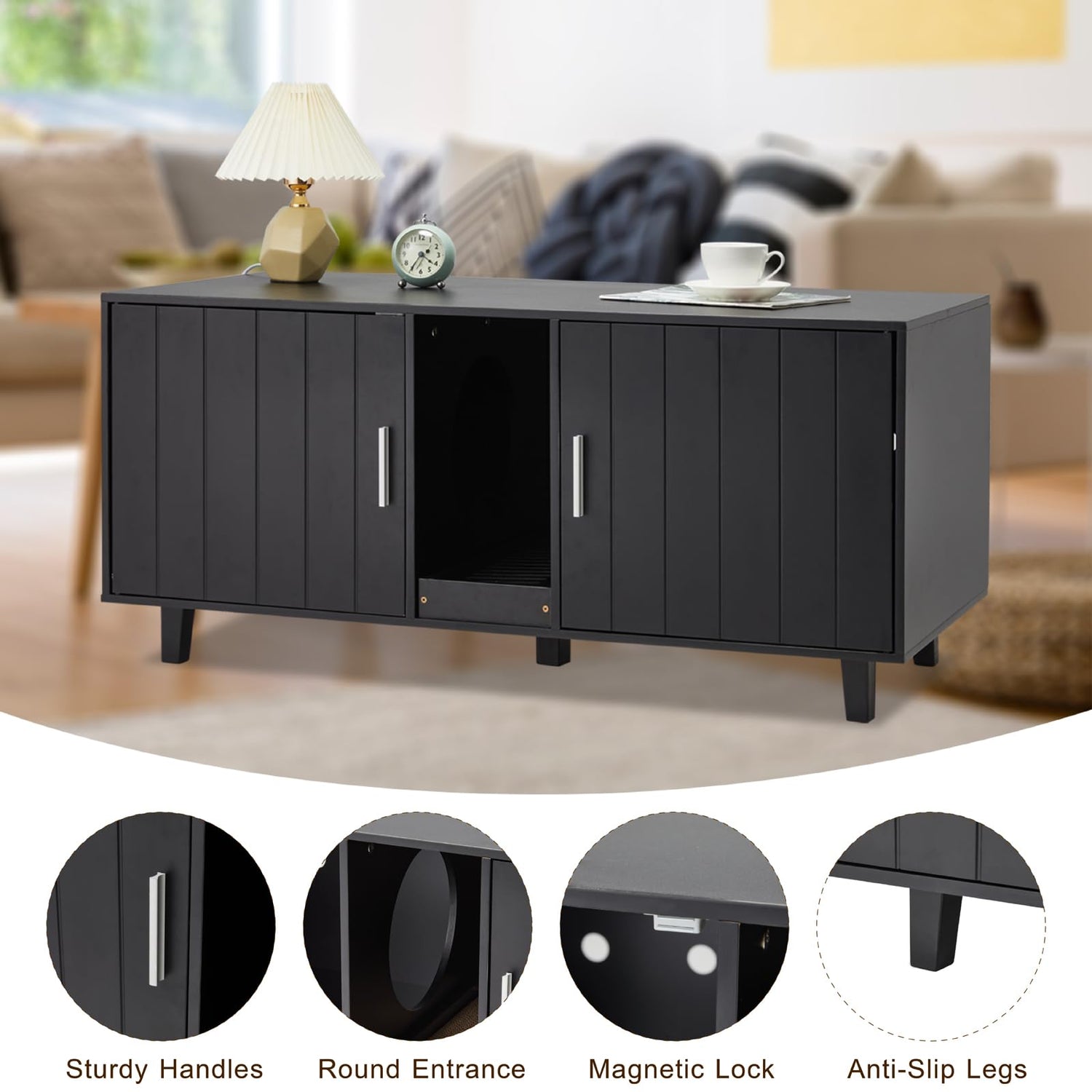 - 【3-in-1 Multiple Functions】This double litter box enclosure can meet the needs of both toilet and rest by hiding litter box and cat bed to keep room clean and tidy. The 43.3” x 20.5” large tabletop is suitable to hold a 50” TV, serving as a TV stand, coffee table or end table to place some everyday items.