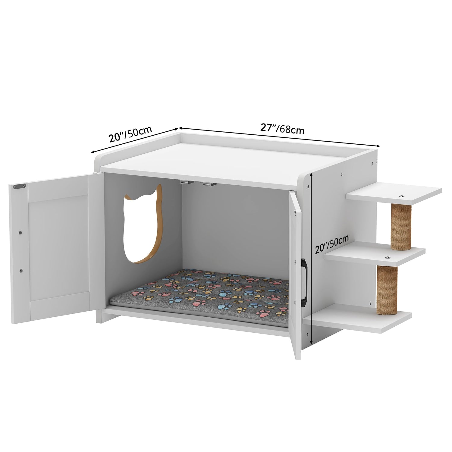 YITAHOME 27" Cat Litter Box Enclosure, Modern Cat Litter Box Furniture Hidden with Scratching Post&cusion, Wooden Cat House as Side End Table Nightstand, Fit Most of Litter Box, White