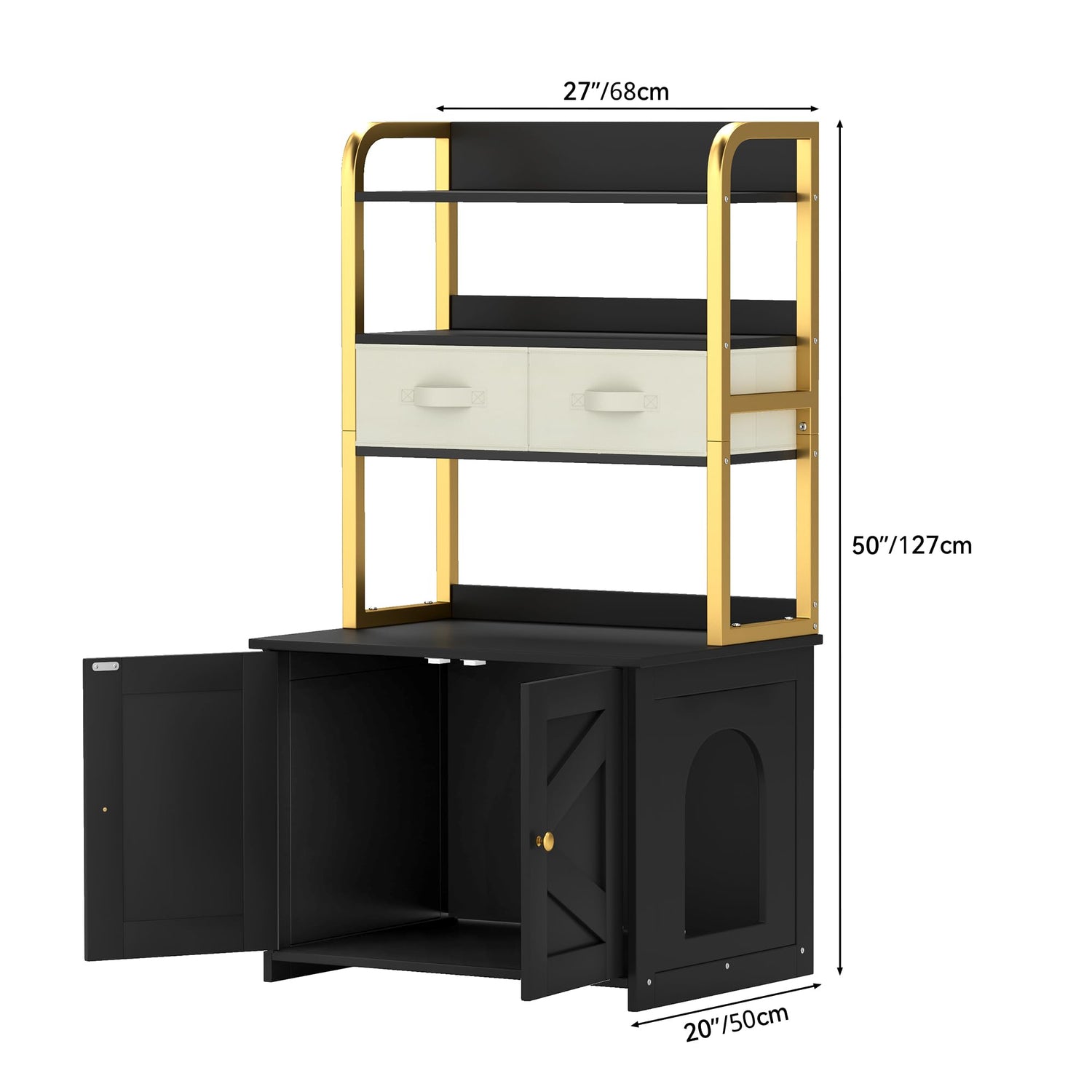 - 【Multifunctional Litter Box Enclosure】Our large cat litter box enclosure boasts storage shelves that allow you to hold potted plants, magazines and so on, while the drawer efficiently store cat playthings and supplies, maintaining a tidy space for you. Its elegant cabinet and sleek steel frame effortlessly blend with your decor