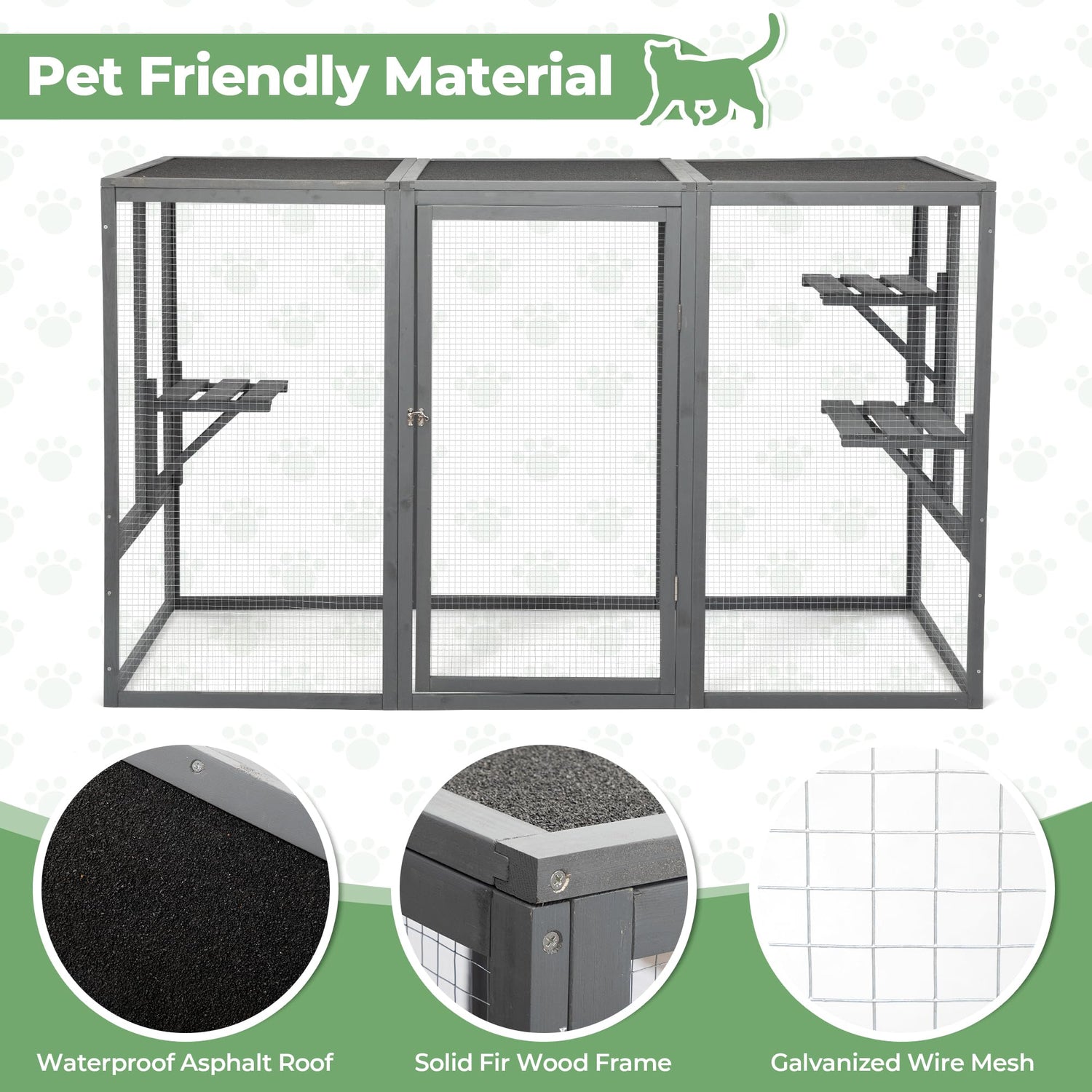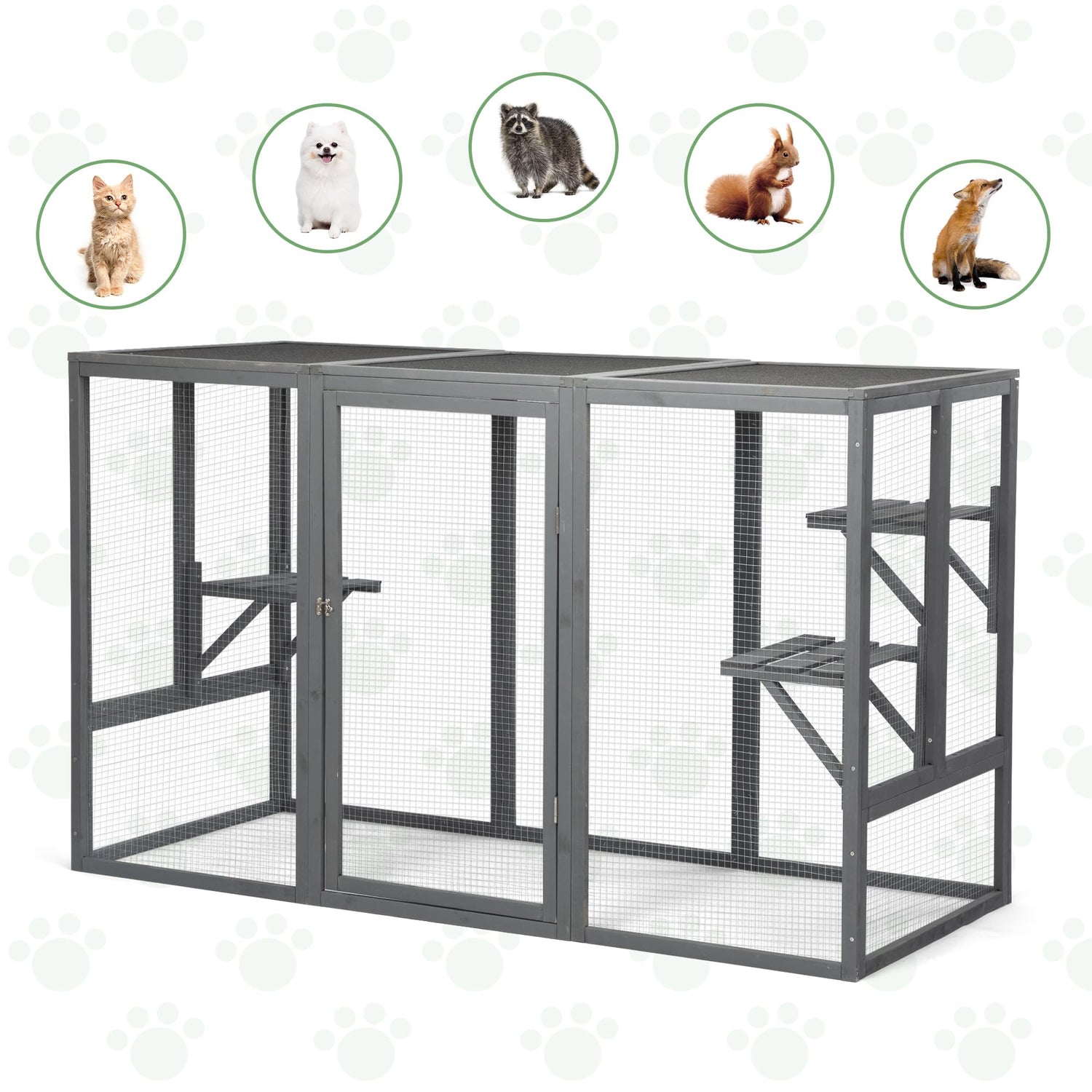 • 【Durable & Secure Construction】: Crafted from natural fir wood and galvanized metal mesh, our outdoor cat cage offers a robust and pet-friendly design. The sturdy structure ensures reliable protection against predators, while the rust-resistant mesh provides added durability for long-lasting use.