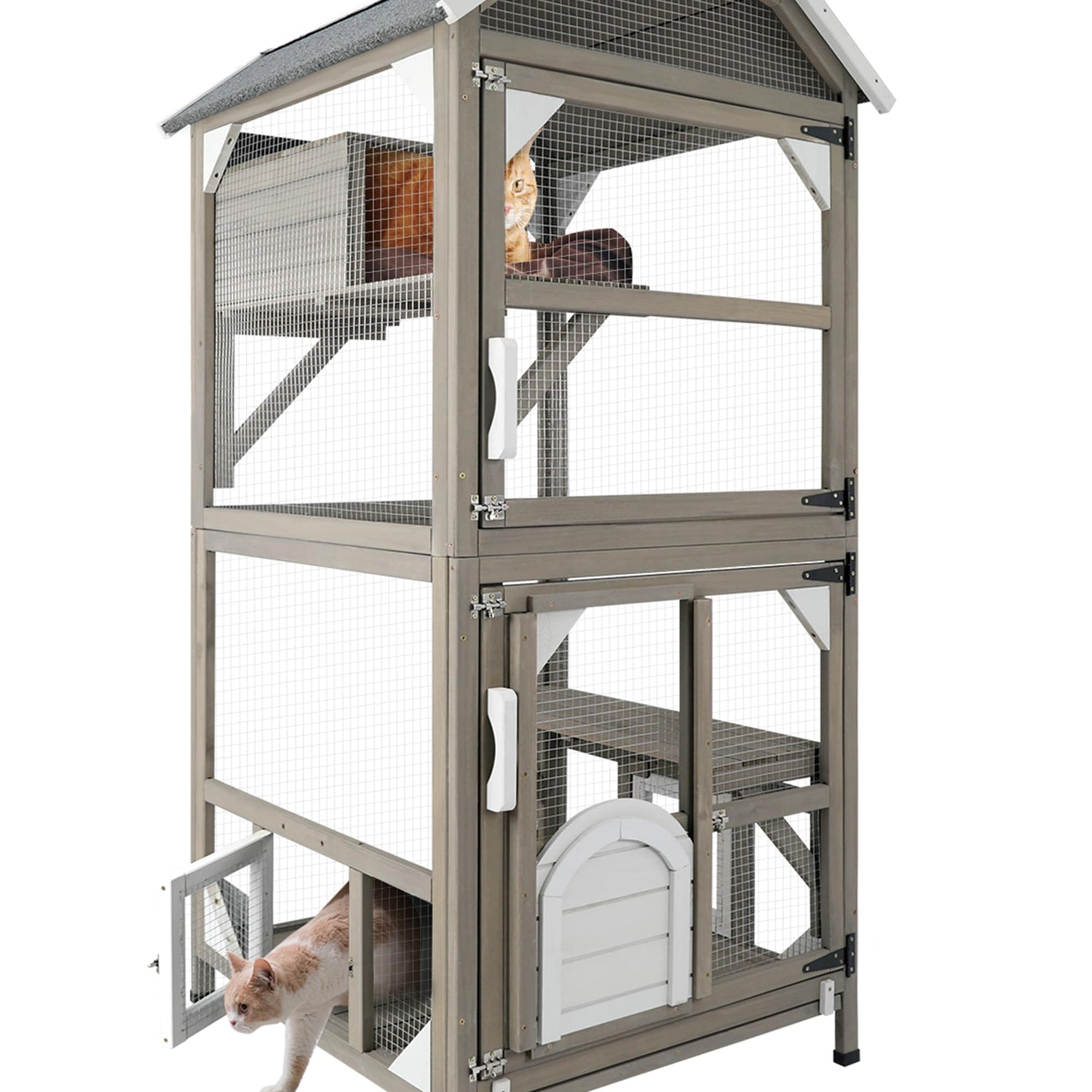 Gowoodhut 71'' Large Cat House Outdoor Catio Enclosures Indoor Kitten Cages with Attachable Window Resting Box,Waterproof Roof
